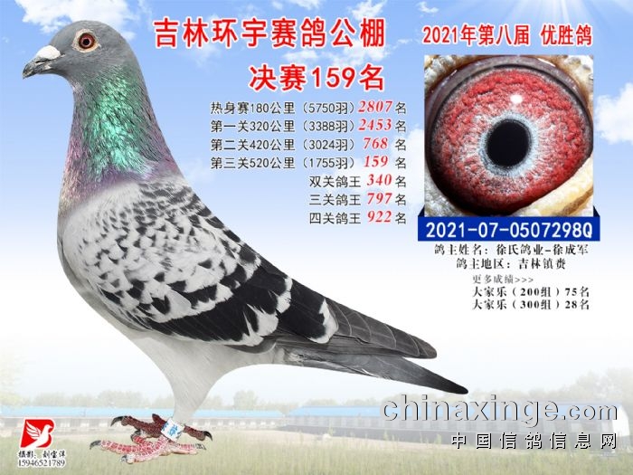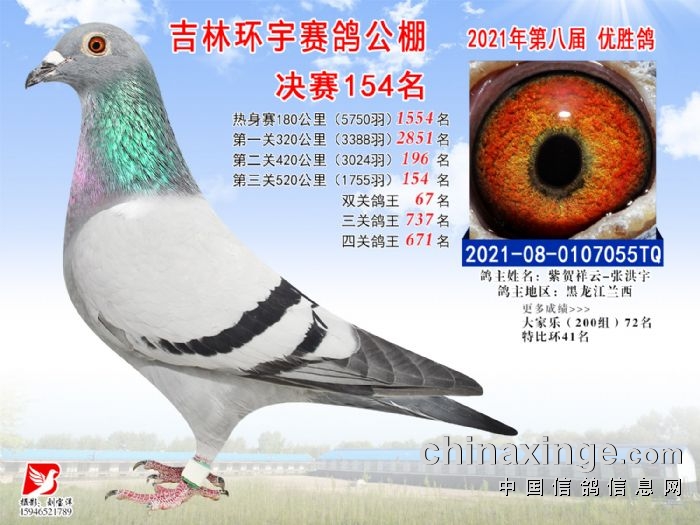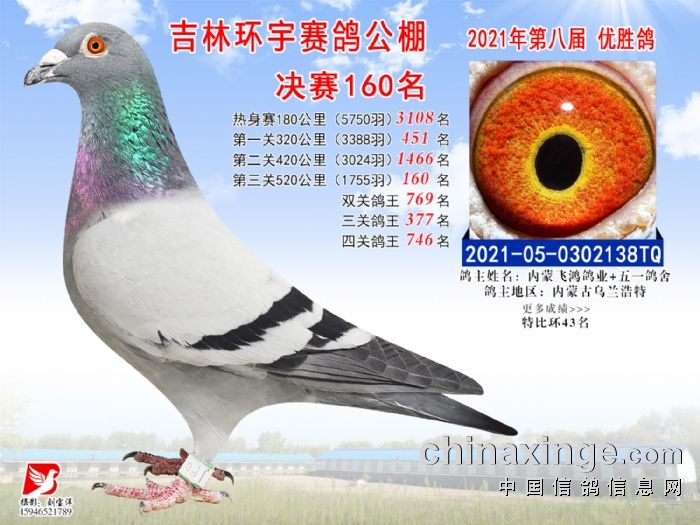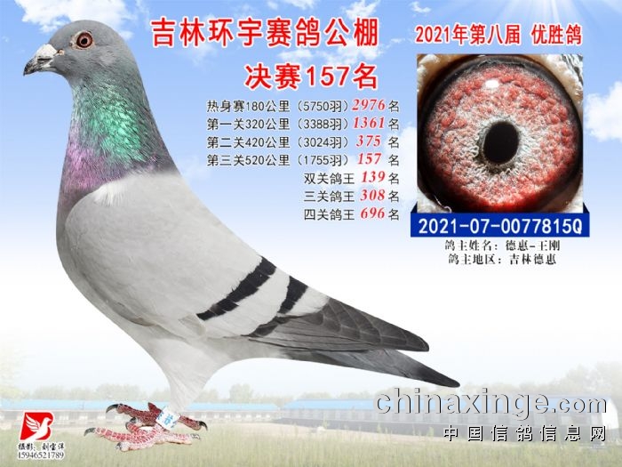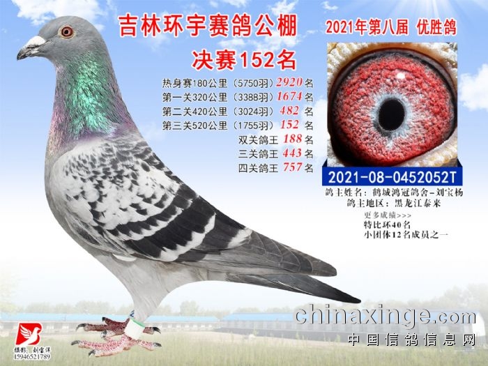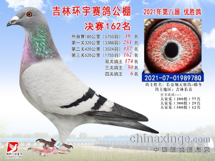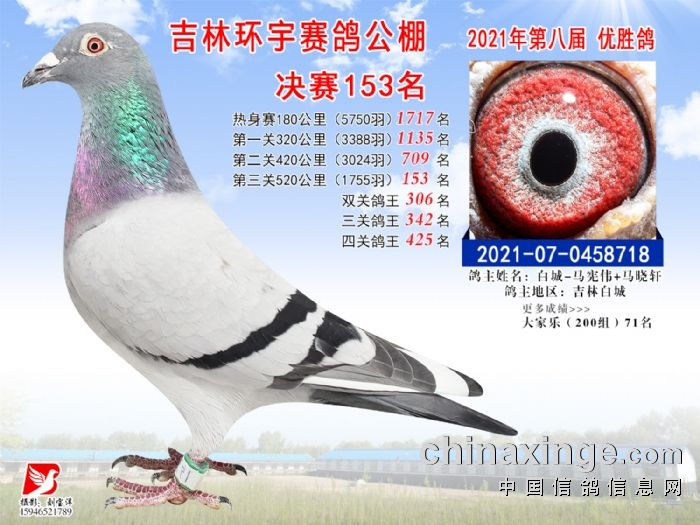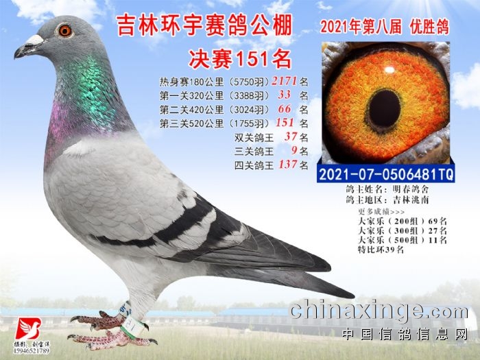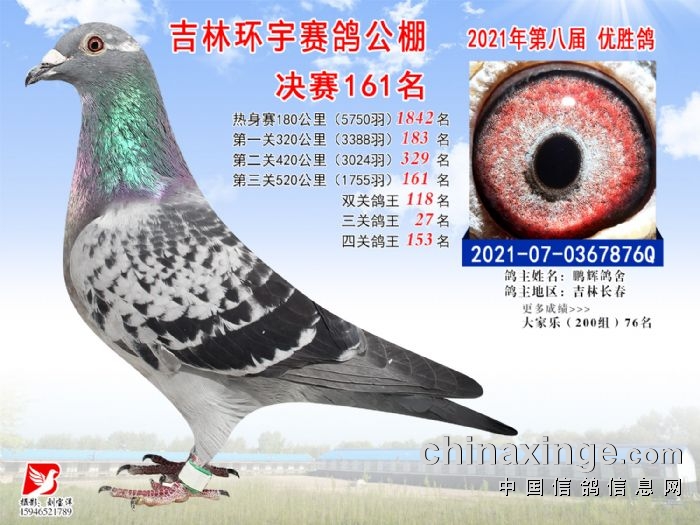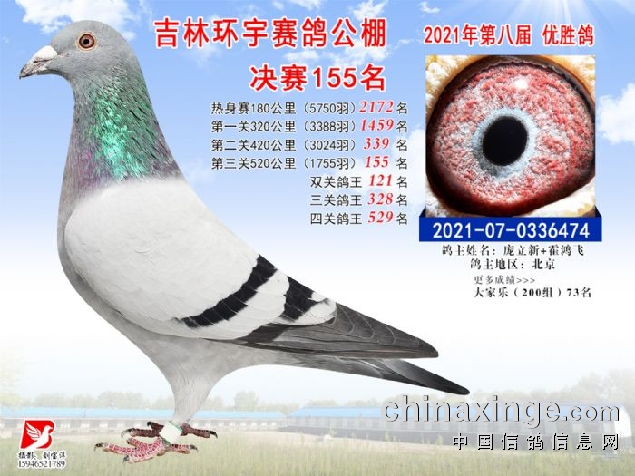 吉林环宇公棚(小棚)520公里决赛获奖鸽照片(151-165)