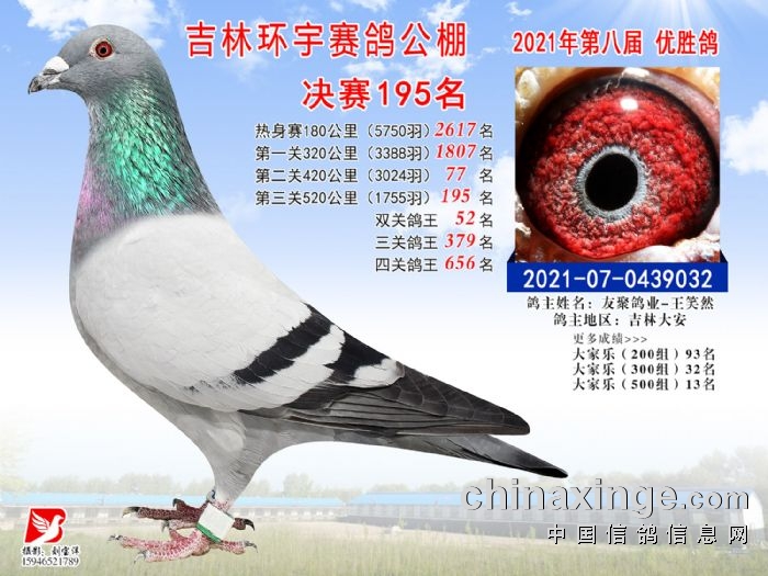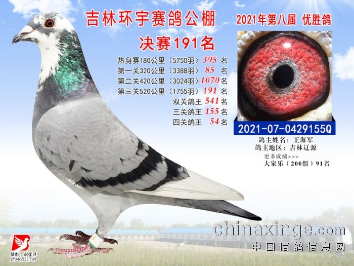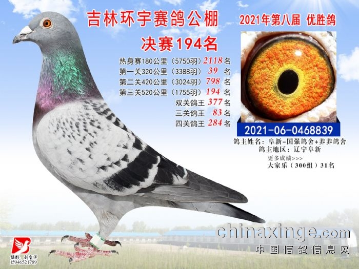 吉林环宇公棚(小棚)520公里决赛获奖鸽照片(181-195)