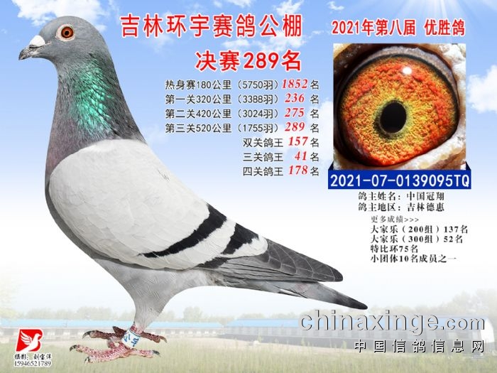 吉林环宇公棚(小棚)520公里决赛获奖鸽照片(286-300)