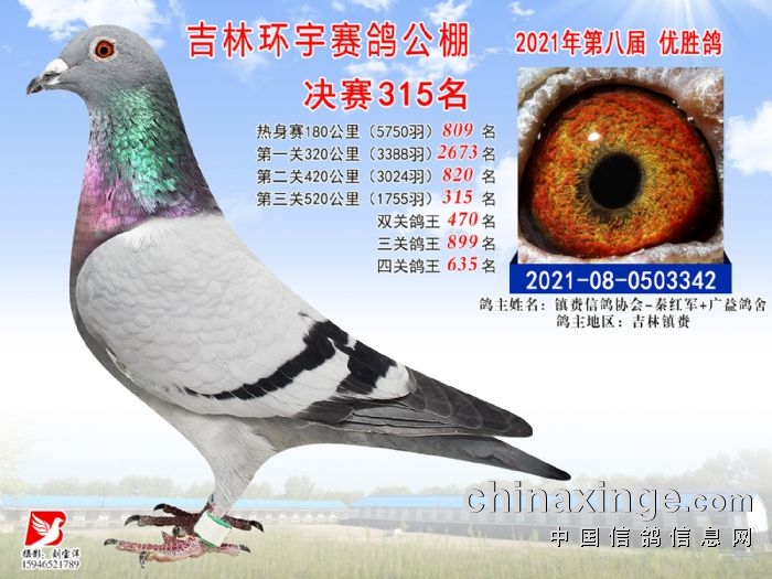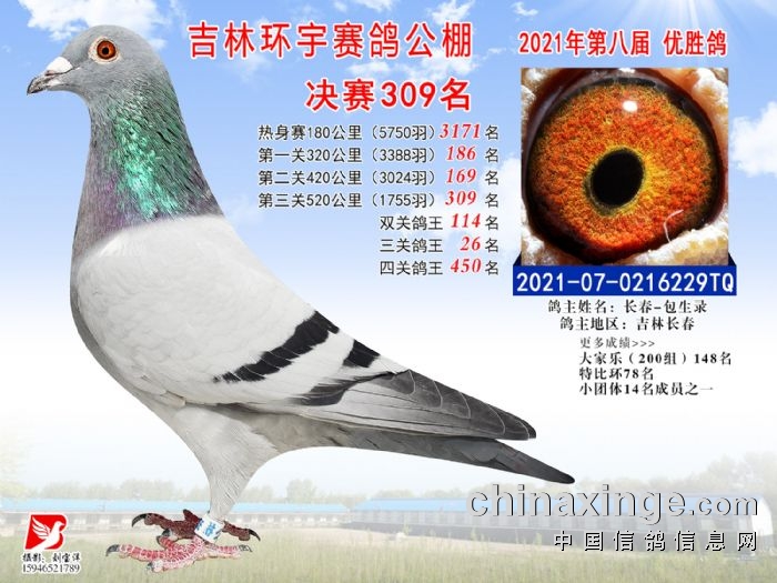 吉林环宇公棚(小棚)520公里决赛获奖鸽照片(301-315)