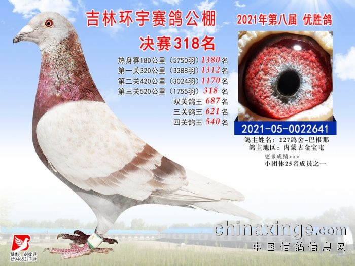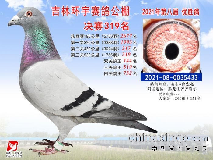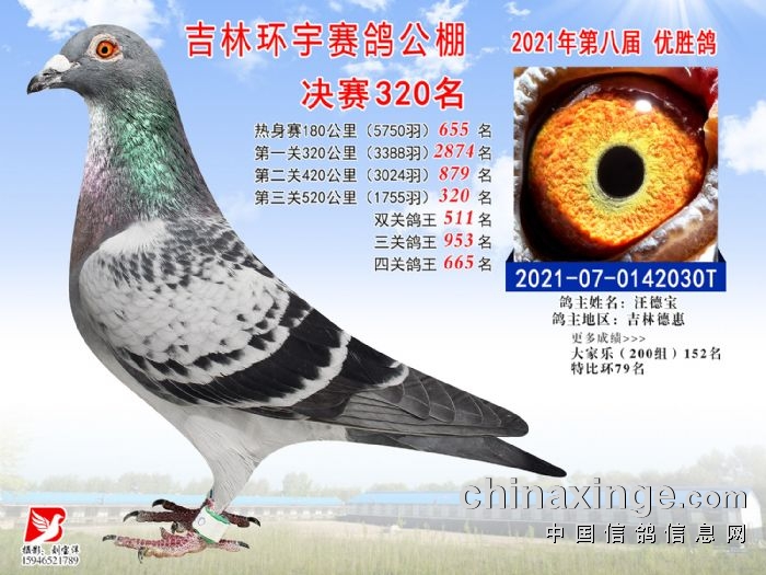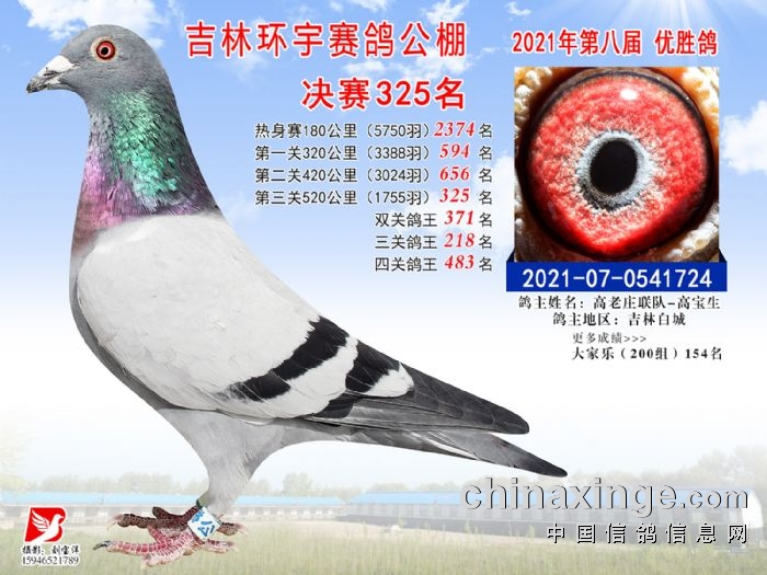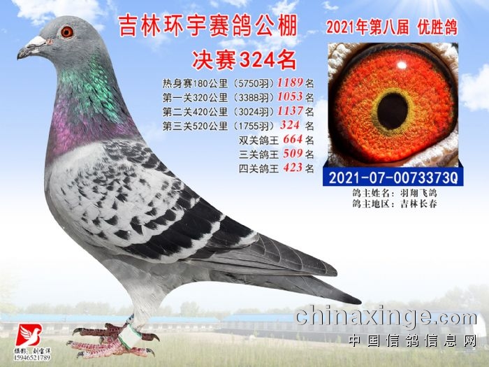 吉林环宇公棚(小棚)520公里决赛获奖鸽照片(316-330)