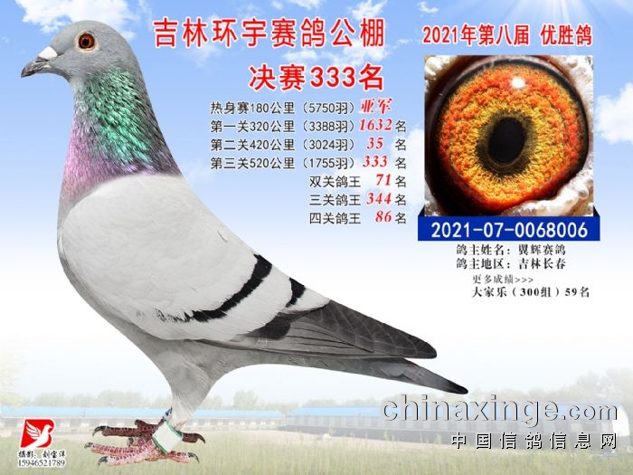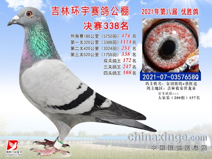 吉林环宇公棚(小棚)520公里决赛获奖鸽照片(331-345)