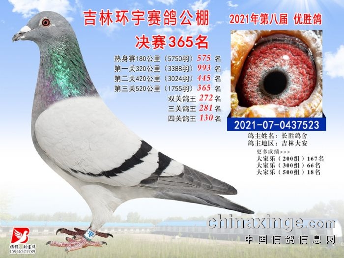 吉林环宇公棚(小棚)520公里决赛获奖鸽照片(361-375)