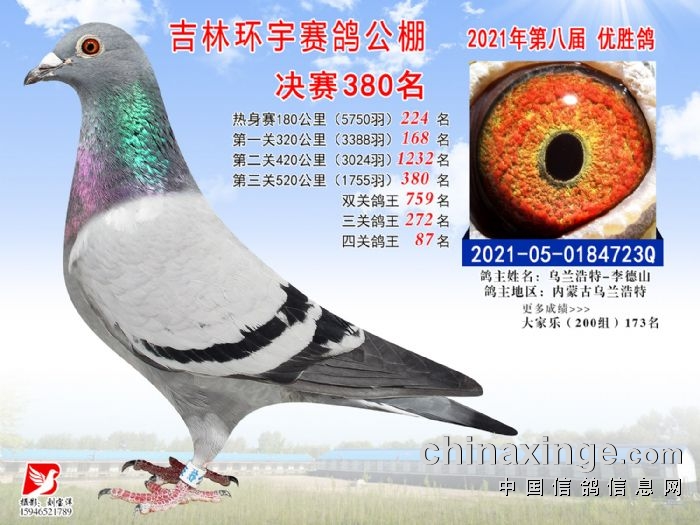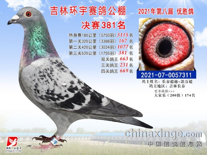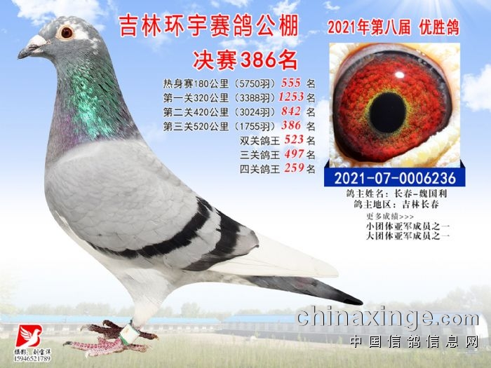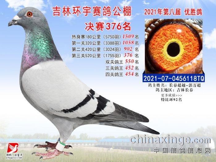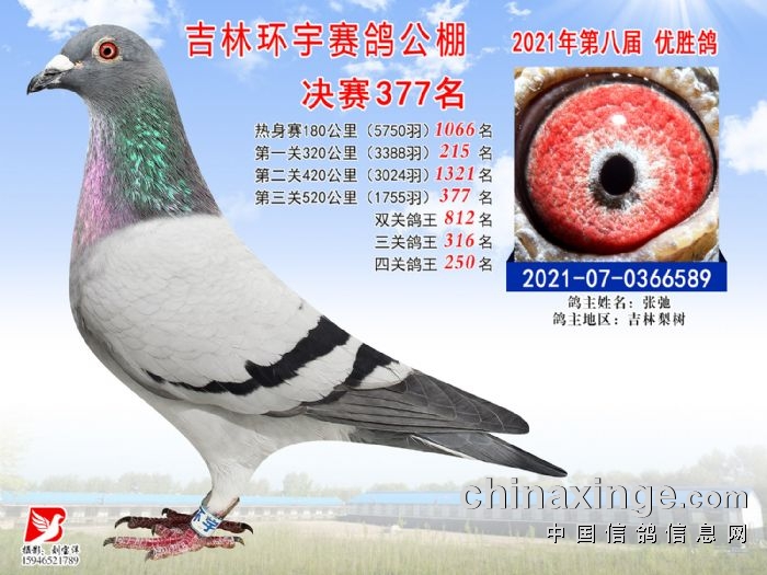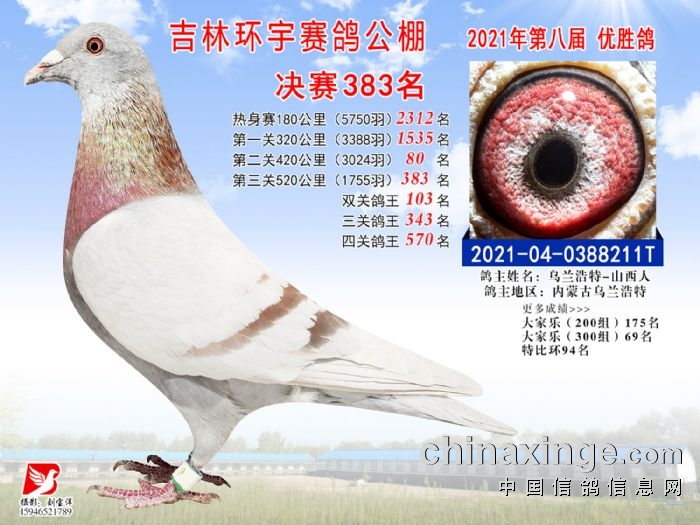 吉林环宇公棚(小棚)520公里决赛获奖鸽照片(376-390)