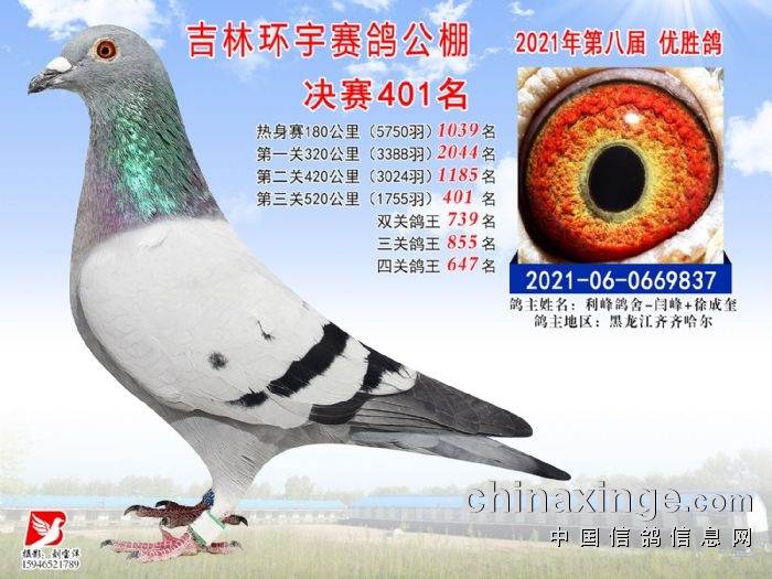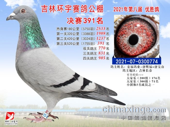 吉林环宇公棚(小棚)520公里决赛获奖鸽照片(391-405)