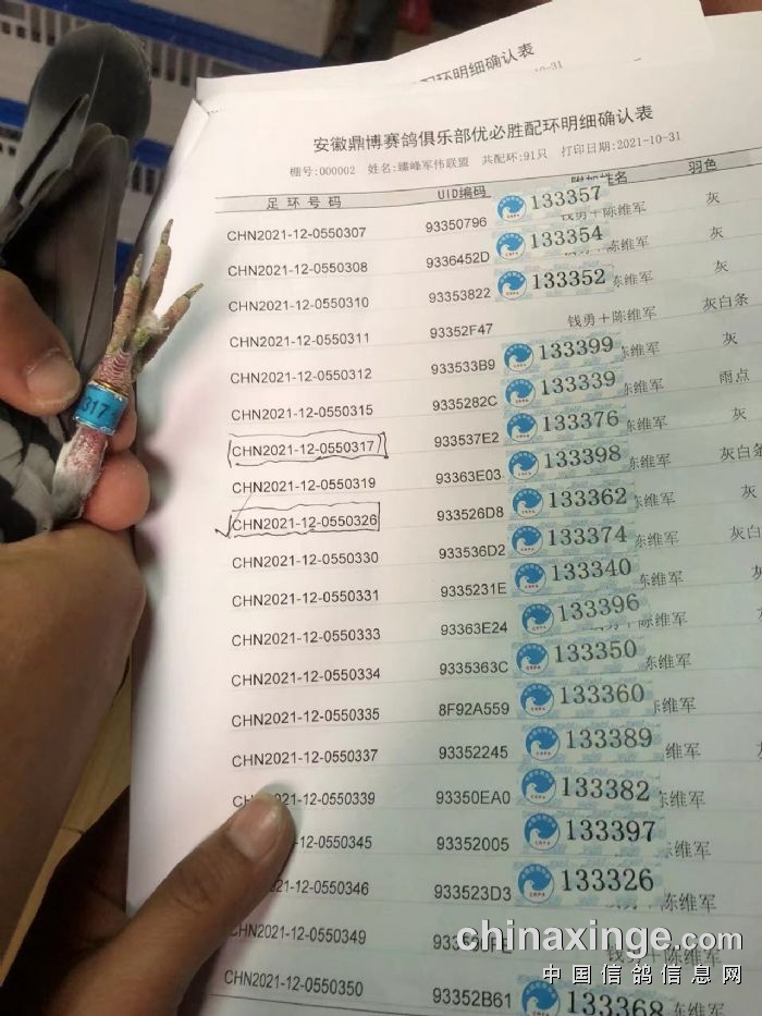 提示:如果此页面是训放清单,要想快速查询鸽环号,请按
