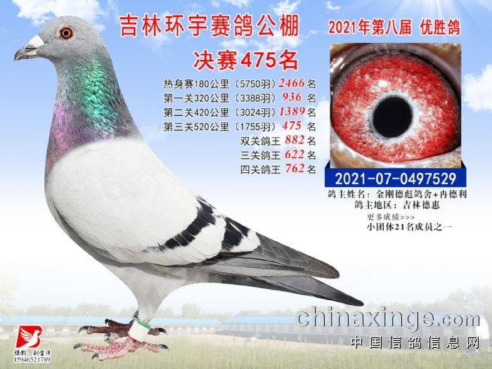 吉林环宇公棚(小棚)520公里决赛获奖鸽照片(466-480)