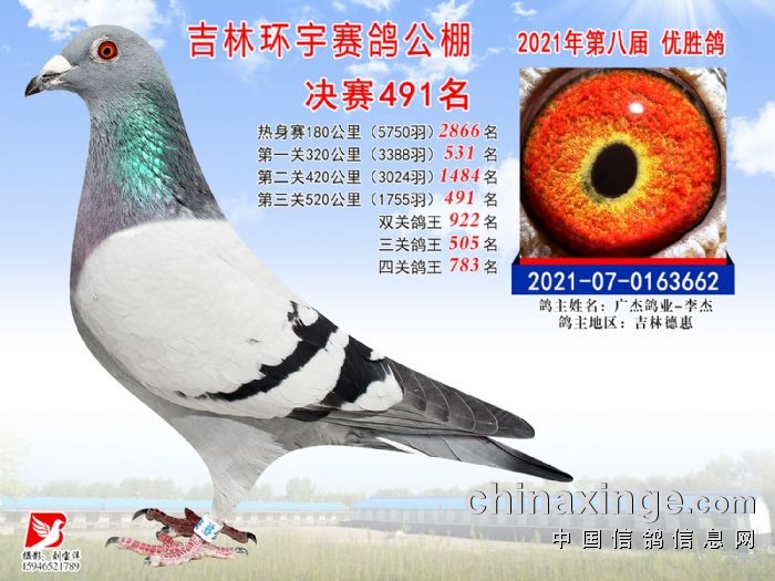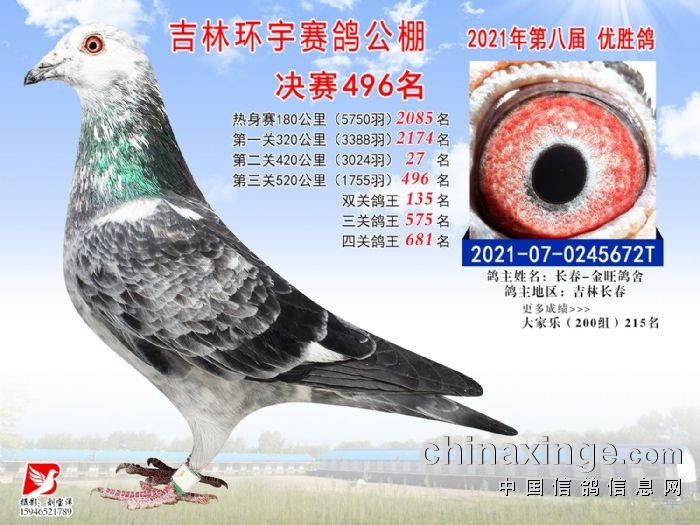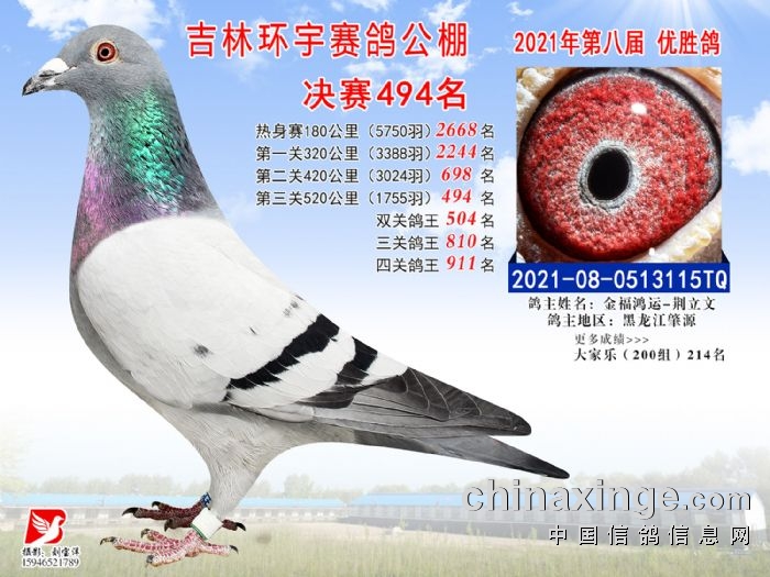 吉林环宇公棚(小棚)520公里决赛获奖鸽照片(491-500)