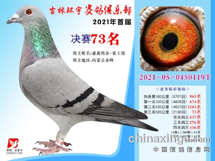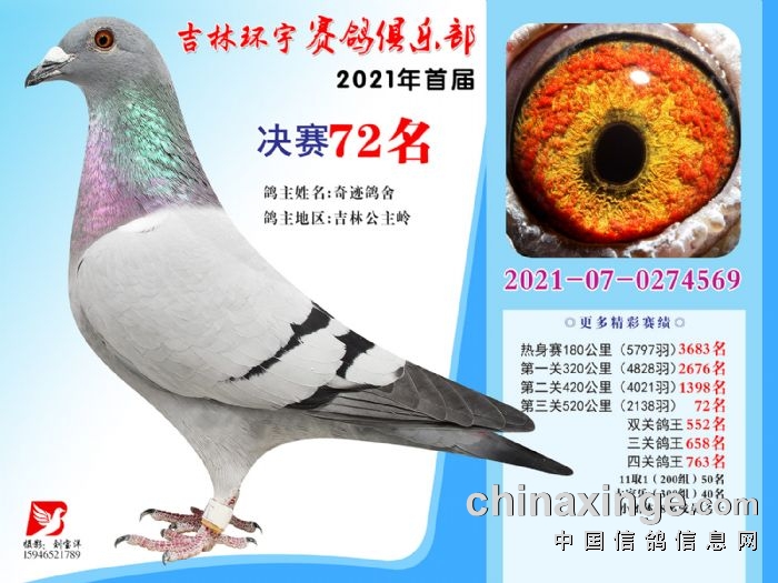 吉林环宇公棚(大棚)520公里决赛获奖鸽照片(61-75)