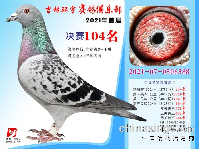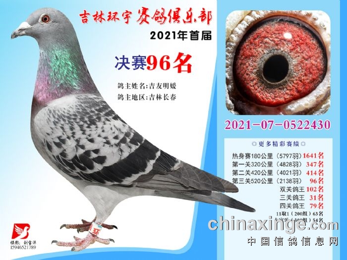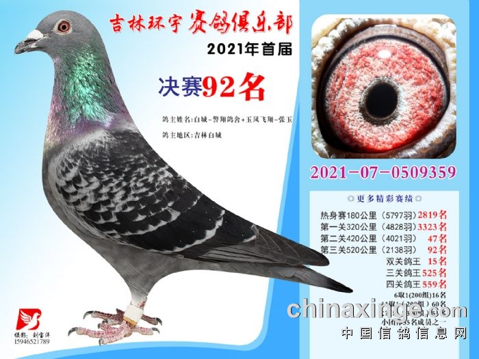吉林环宇公棚(大棚)520公里决赛获奖鸽照片(91-105)