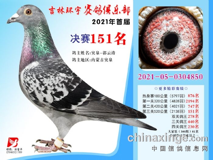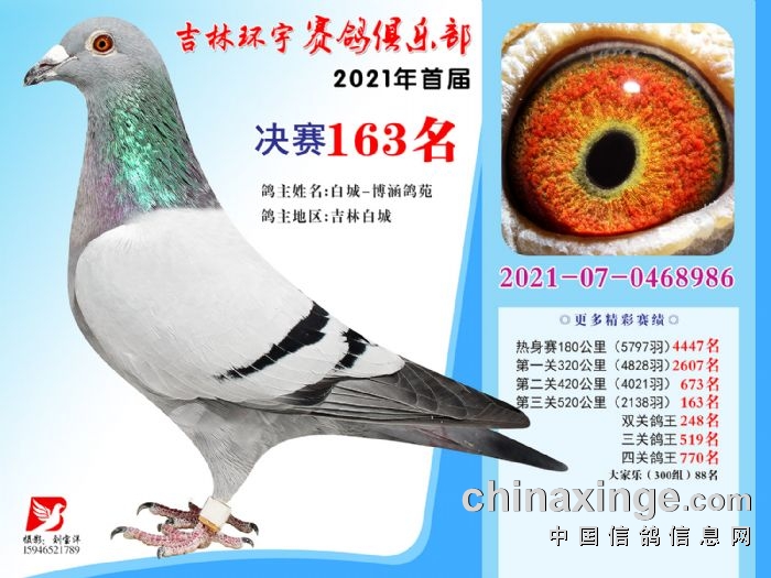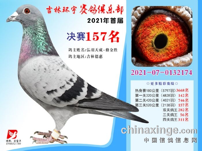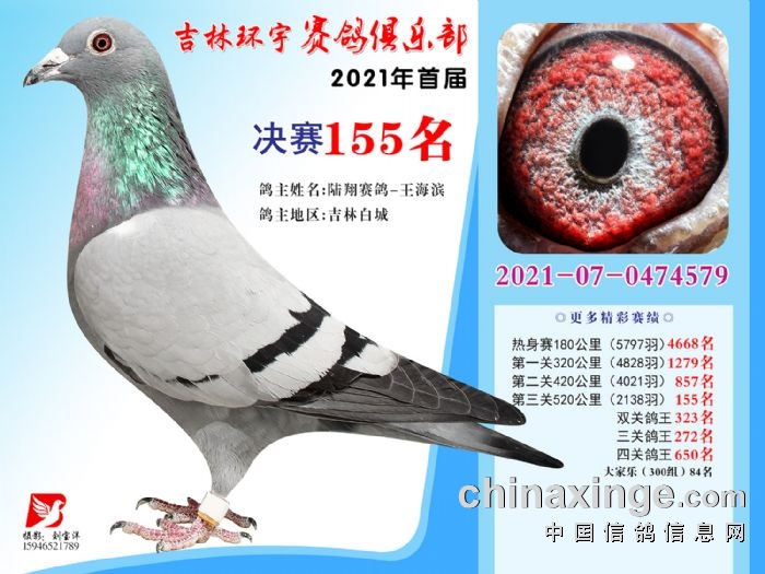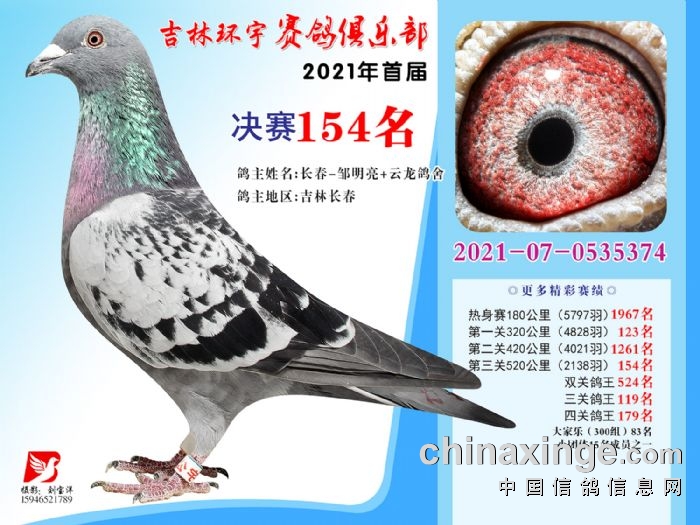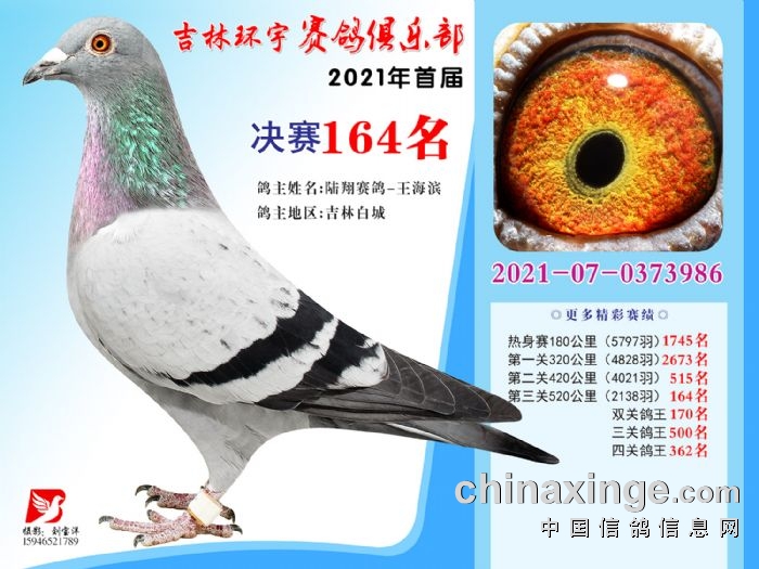 吉林环宇公棚(大棚)520公里决赛获奖鸽照片(151-165)