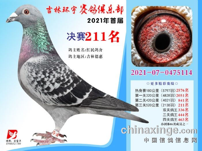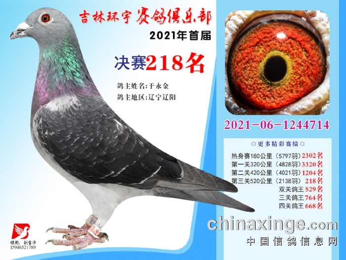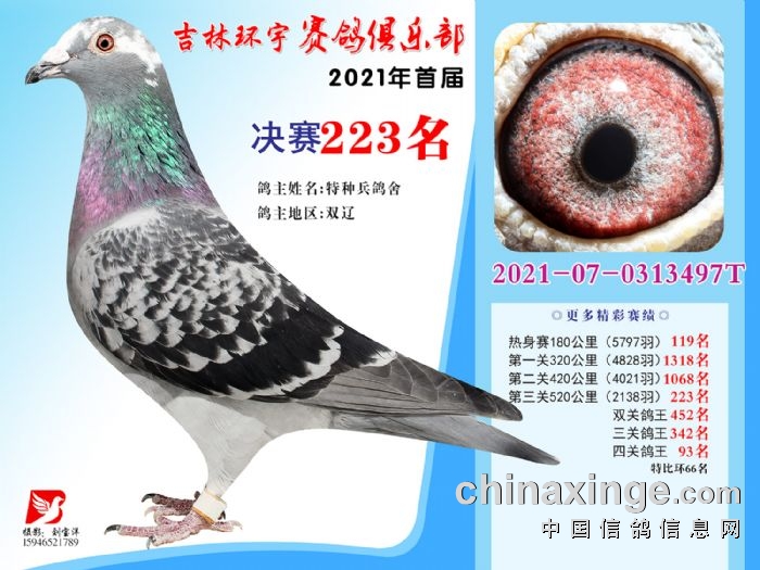 吉林环宇公棚(大棚)520公里决赛获奖鸽照片(211-225)