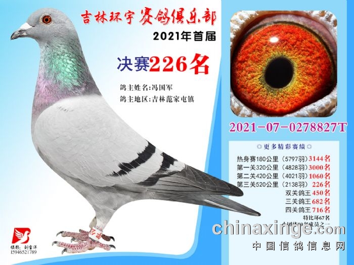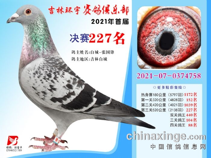 吉林环宇公棚(大棚)520公里决赛获奖鸽照片(226-240)