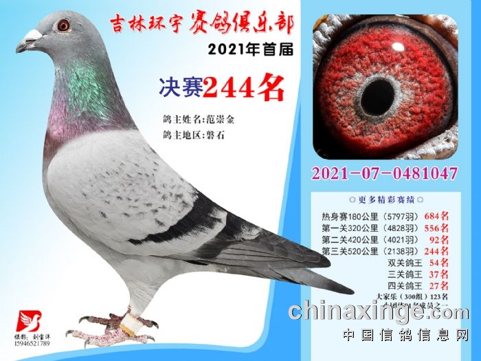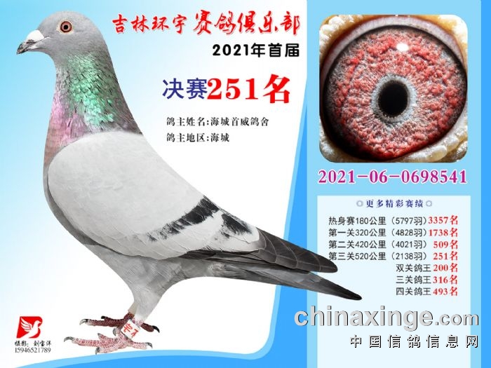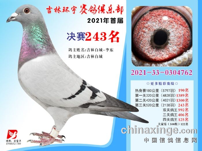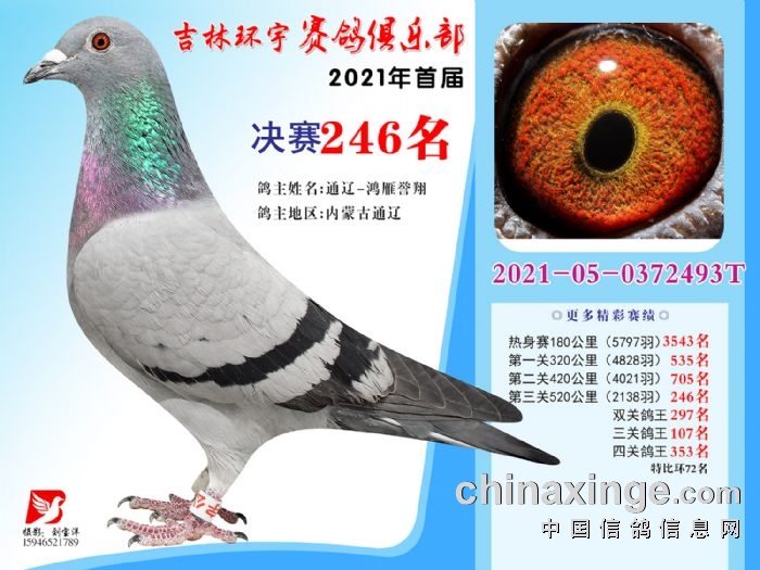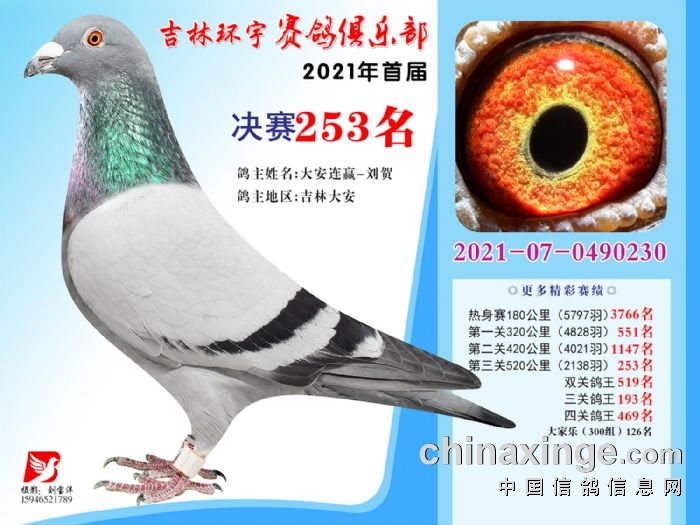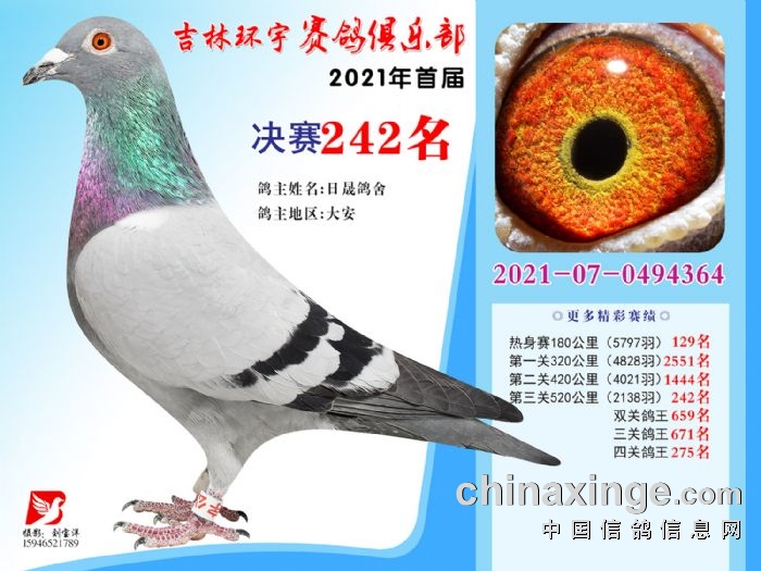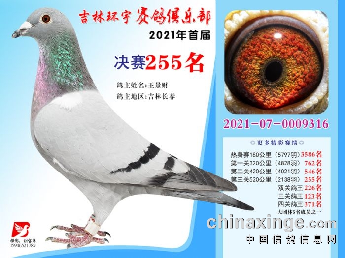 吉林环宇公棚(大棚)520公里决赛获奖鸽照片(241-255)