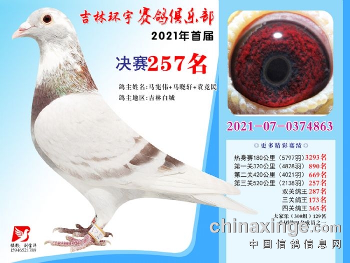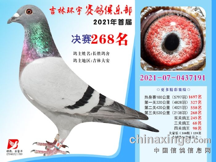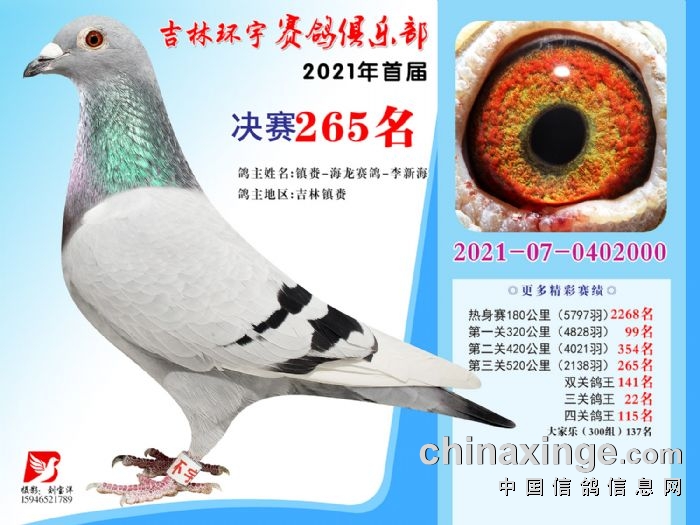 吉林环宇公棚(大棚)520公里决赛获奖鸽照片(256-270)