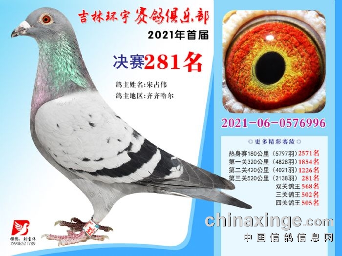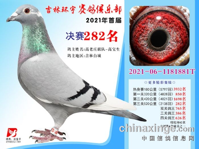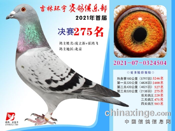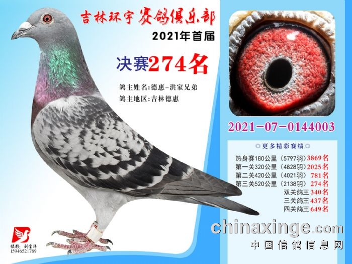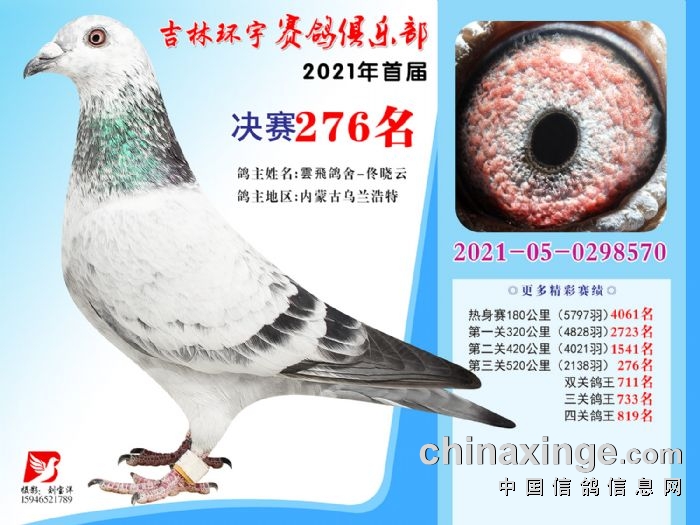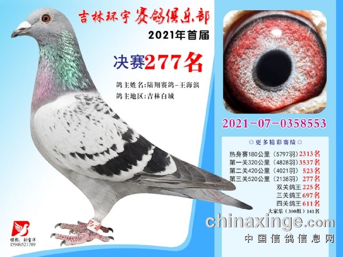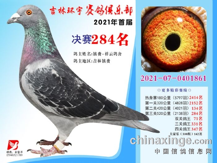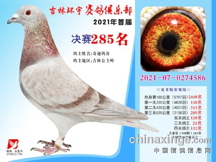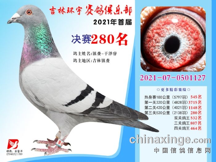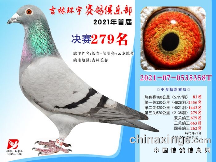 吉林环宇公棚(大棚)520公里决赛获奖鸽照片(271-285)