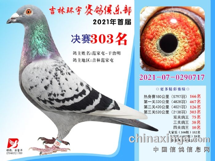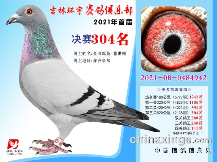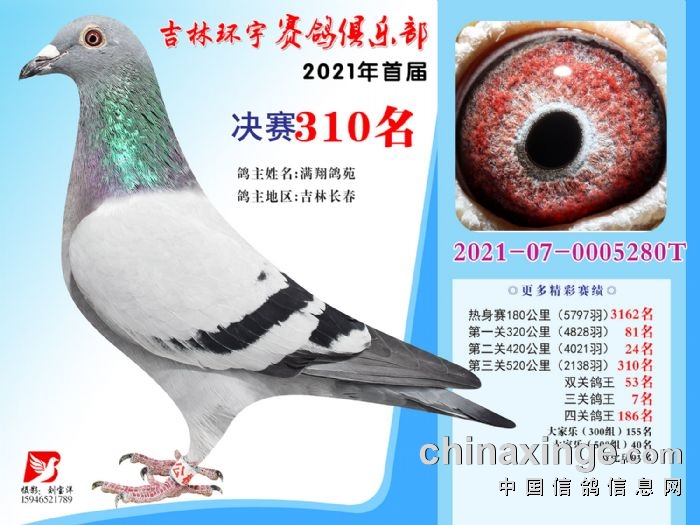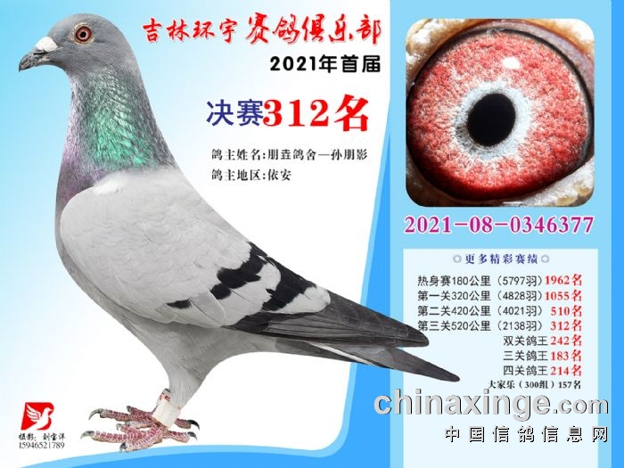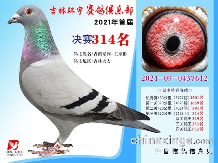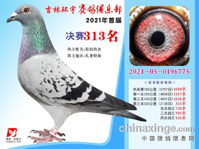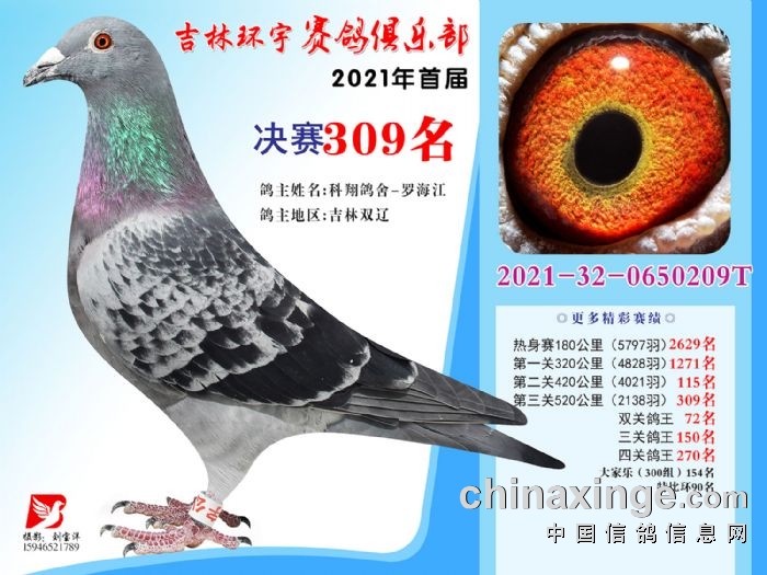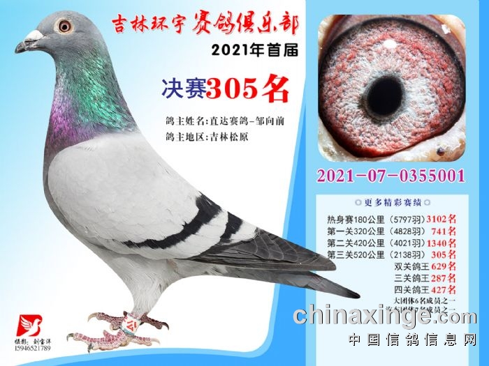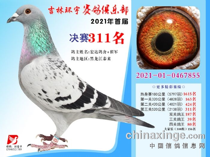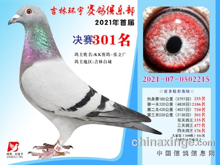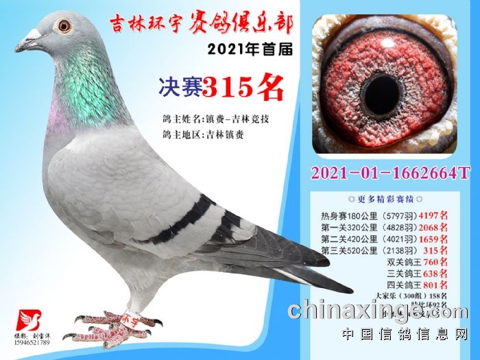 吉林环宇公棚(大棚)520公里决赛获奖鸽照片(301-315)