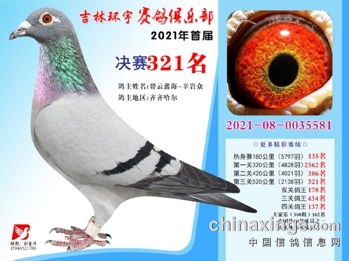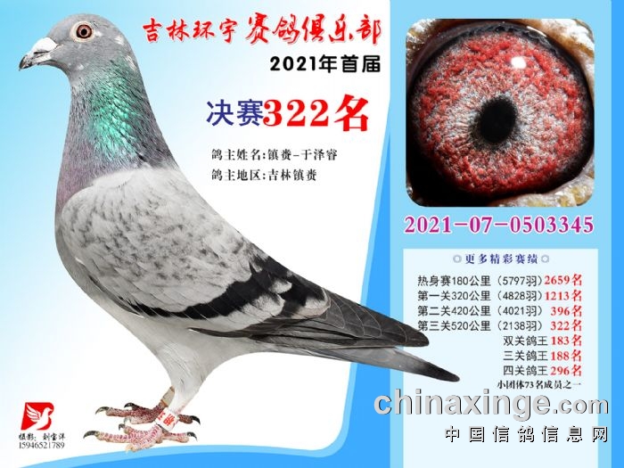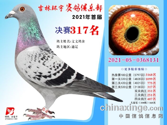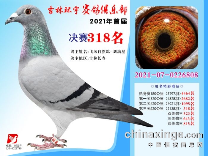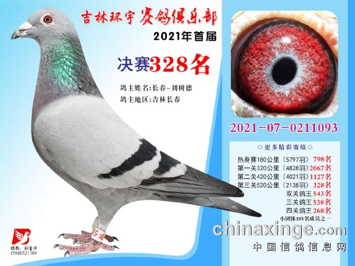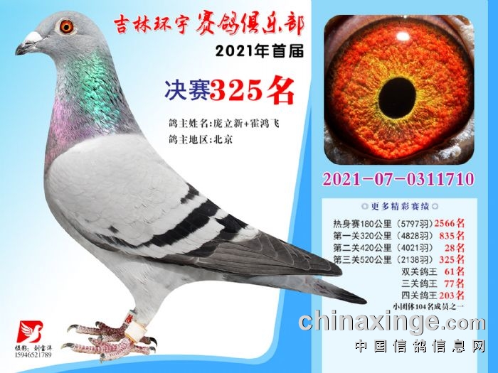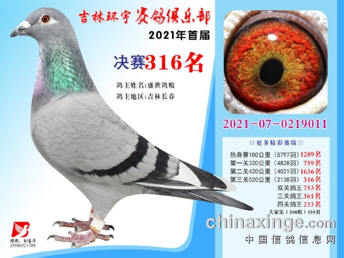 吉林环宇公棚(大棚)520公里决赛获奖鸽照片(316-330)