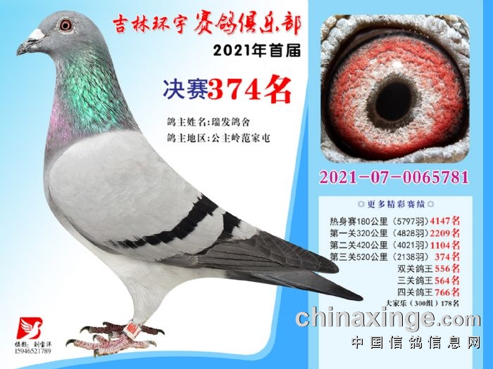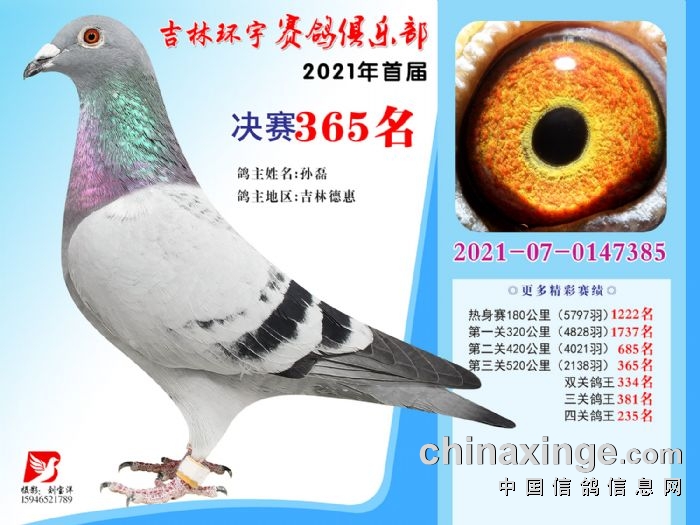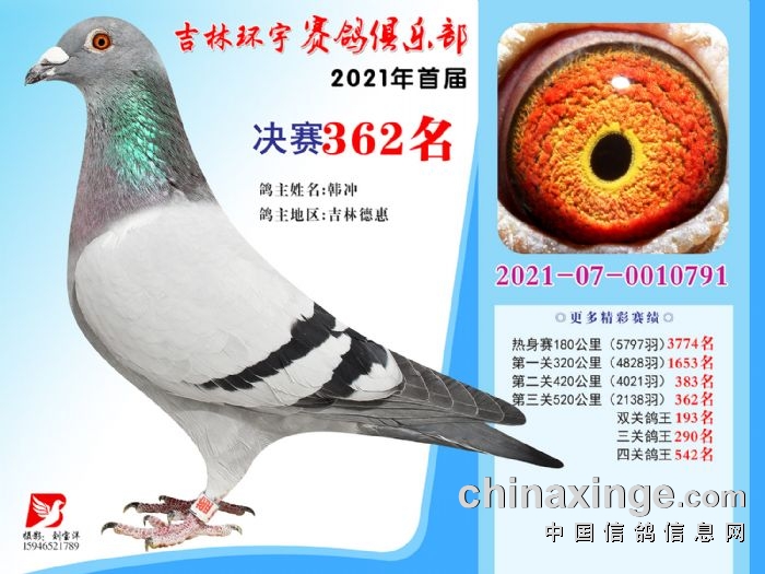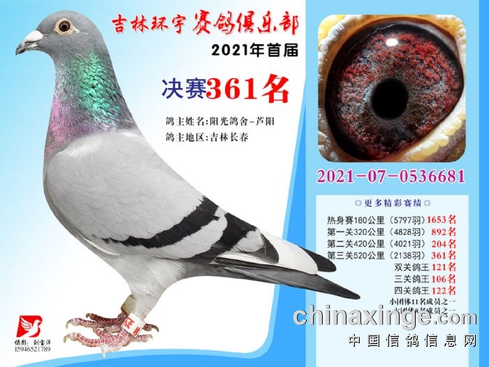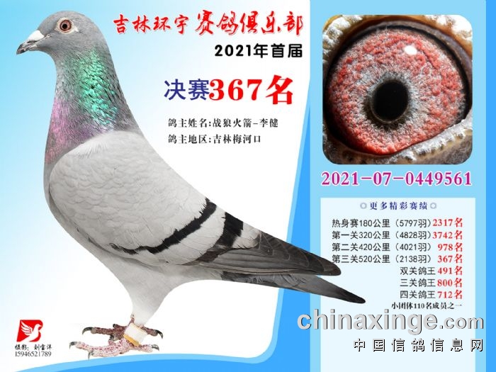 吉林环宇公棚(大棚)520公里决赛获奖鸽照片(361-375)