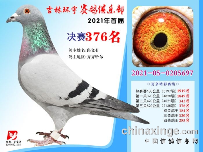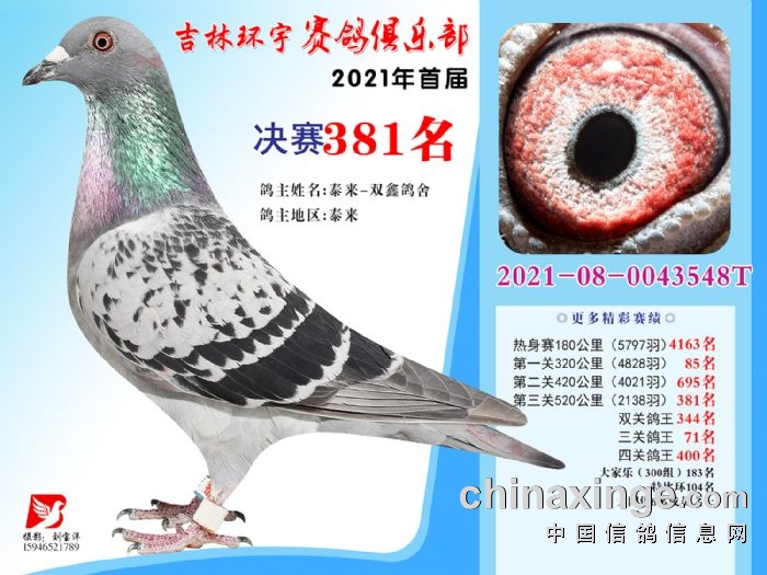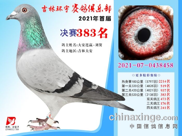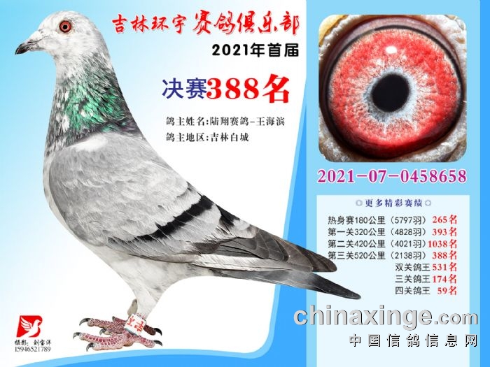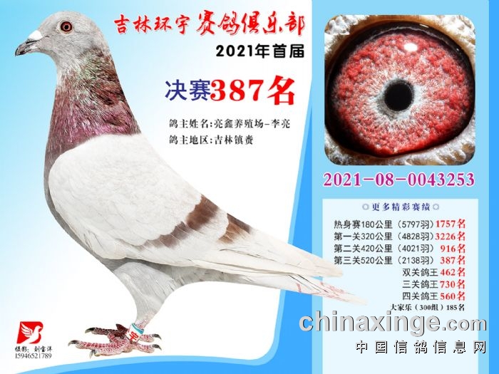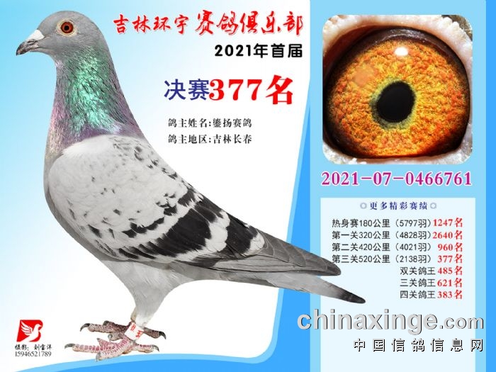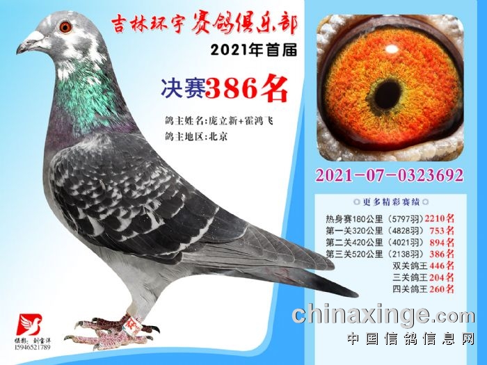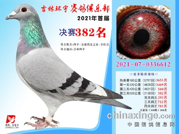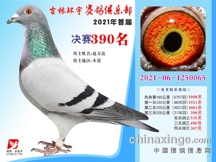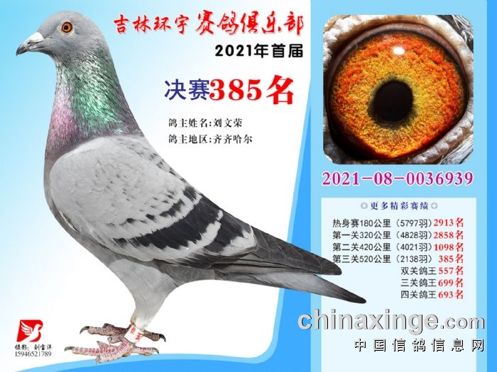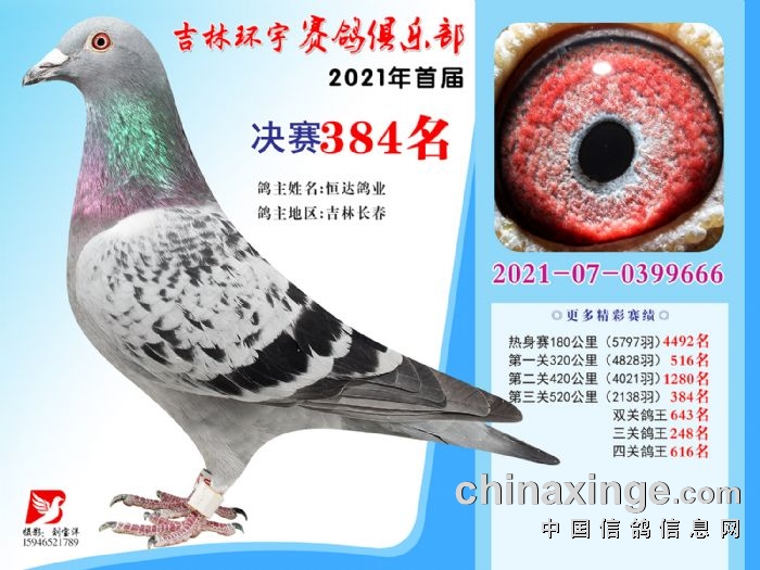 吉林环宇公棚(大棚)520公里决赛获奖鸽照片(376-390)