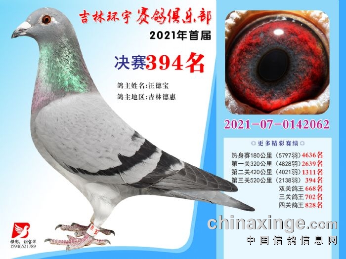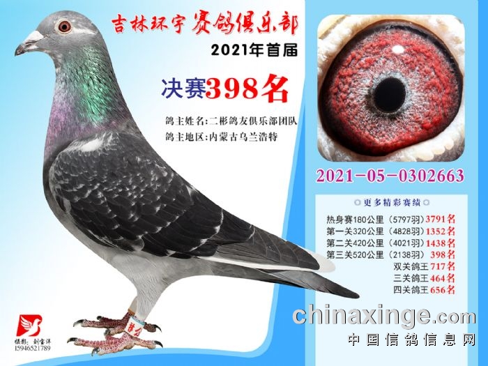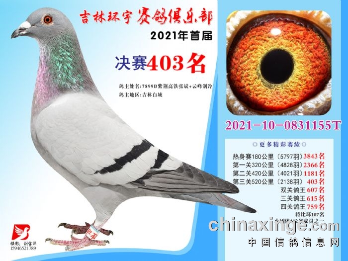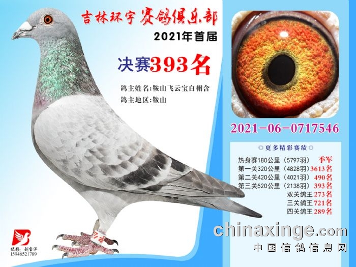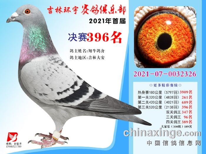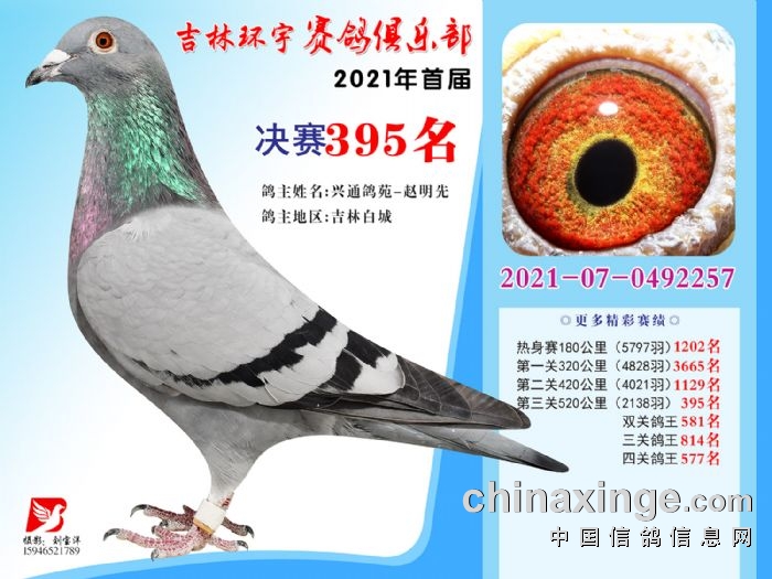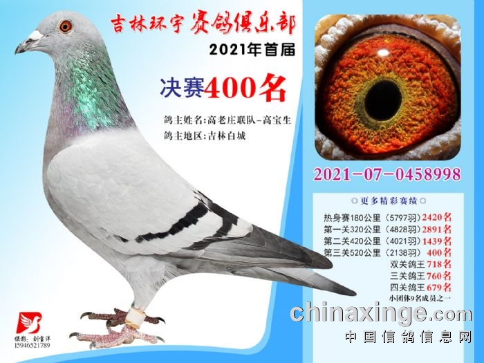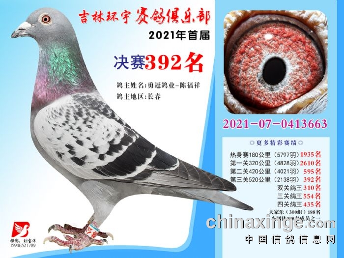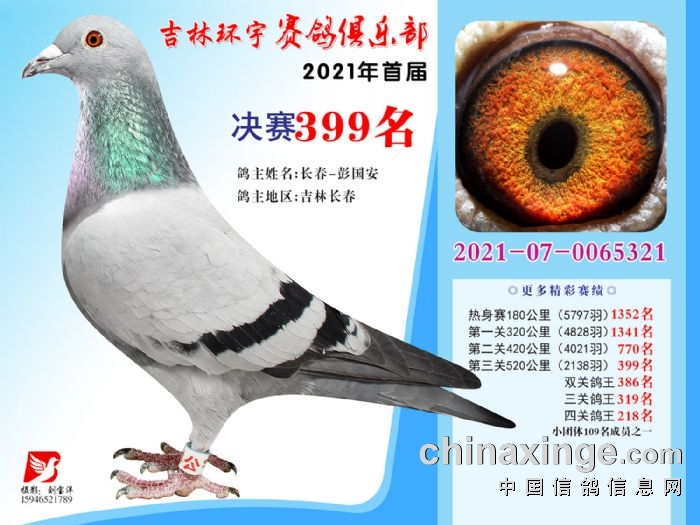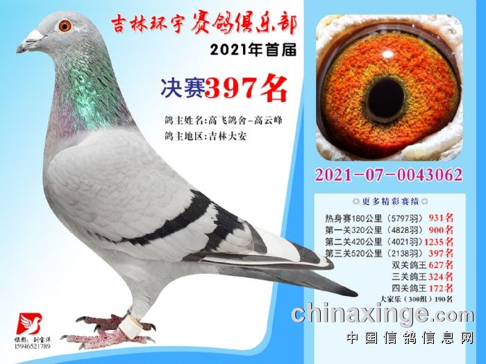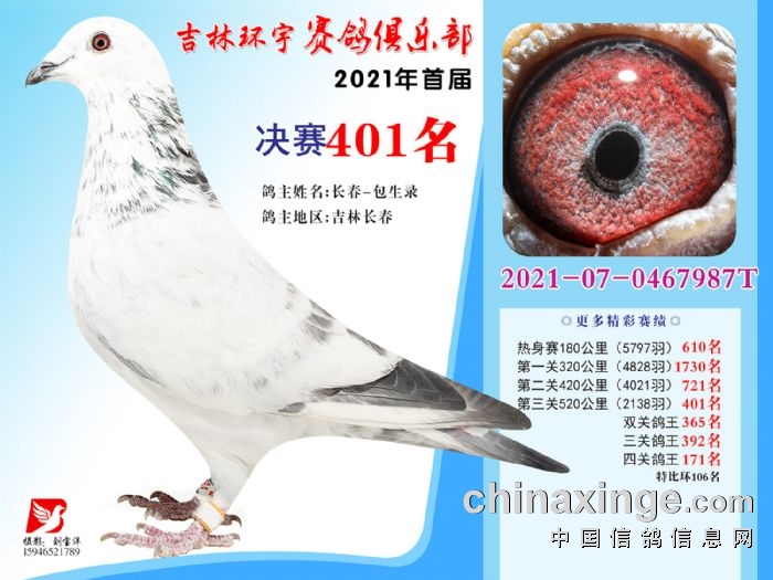 吉林环宇公棚(大棚)520公里决赛获奖鸽照片(391-405)