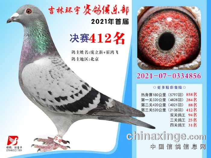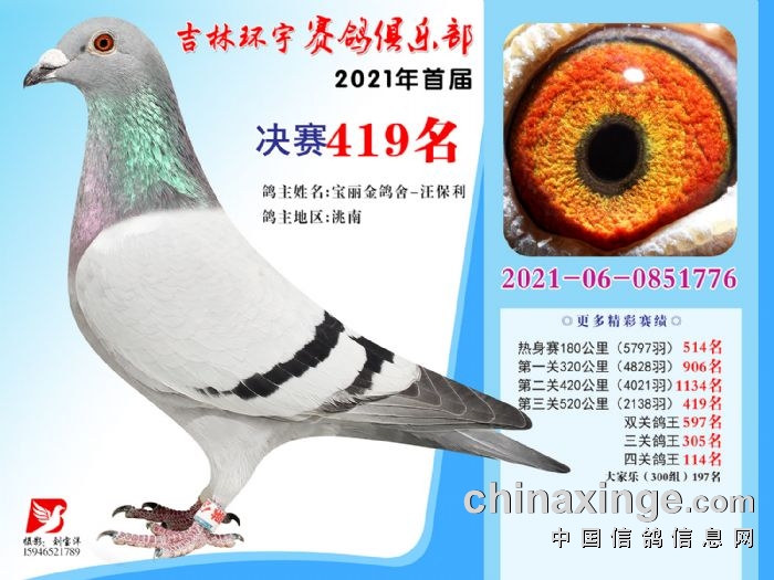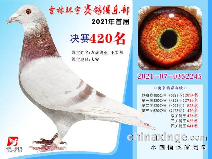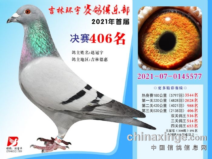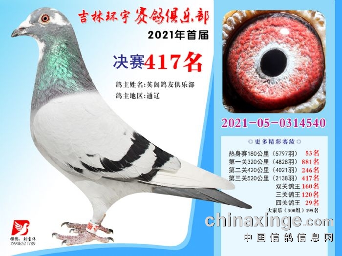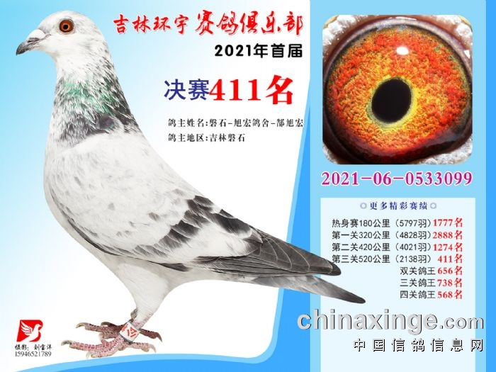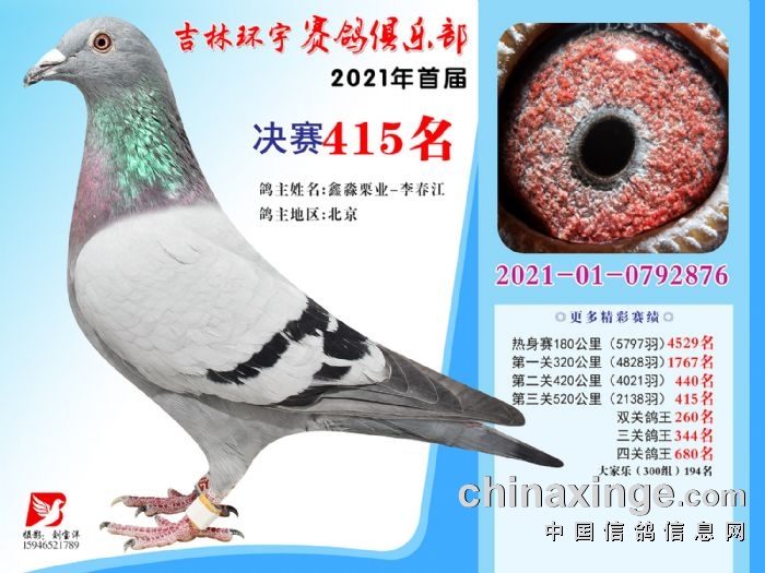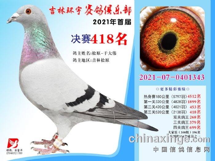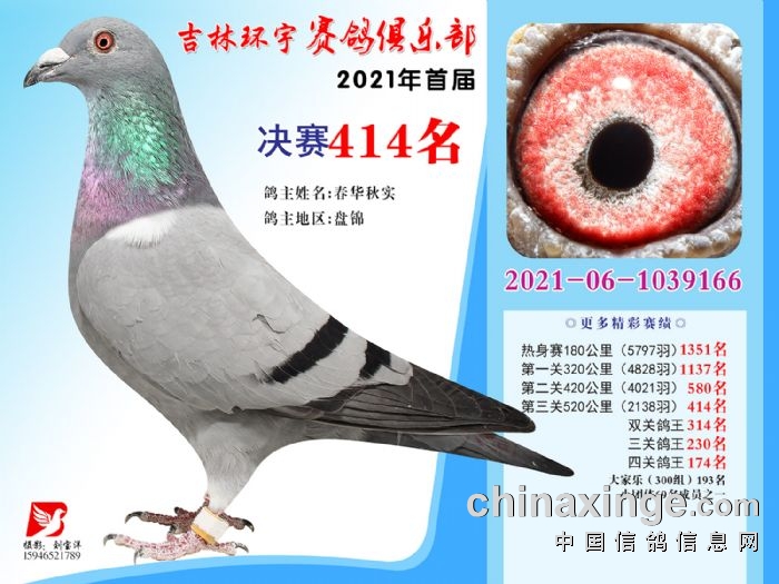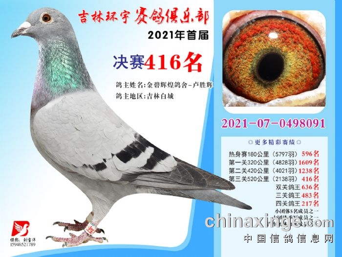 吉林环宇公棚(大棚)520公里决赛获奖鸽照片(406-420)