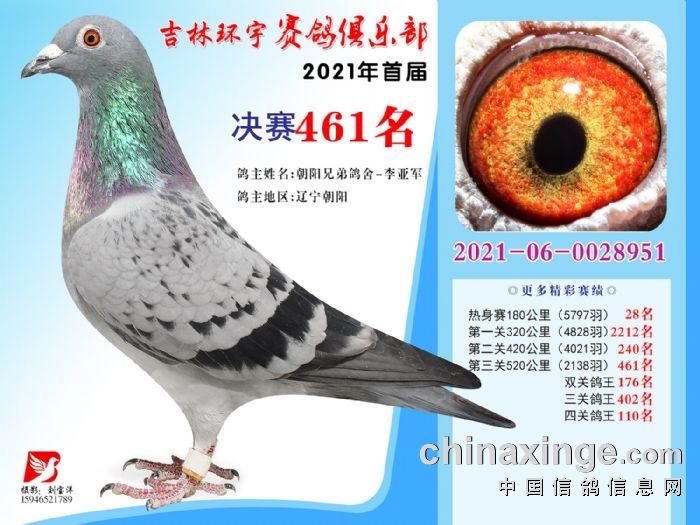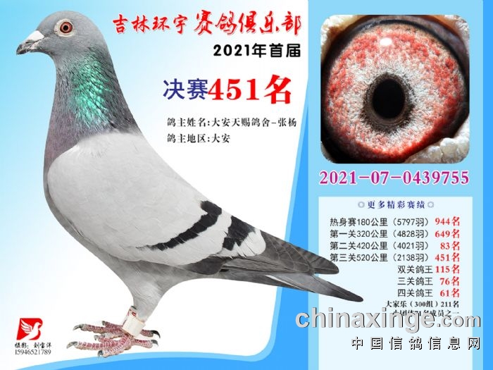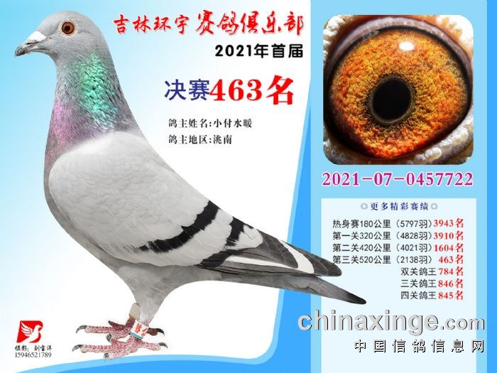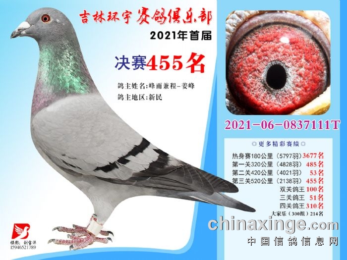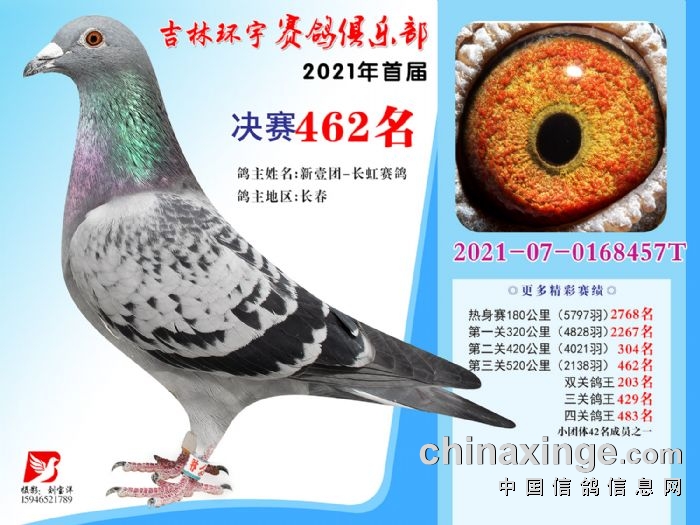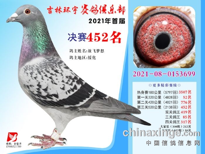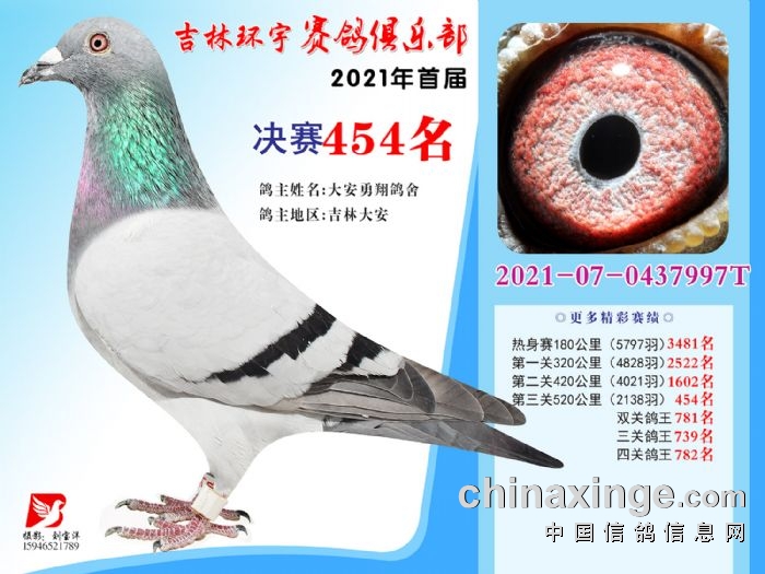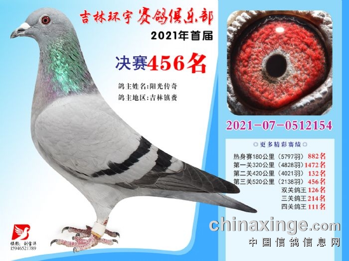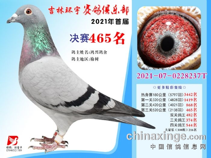 吉林环宇公棚(大棚)520公里决赛获奖鸽照片(451-465)