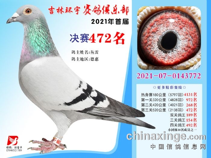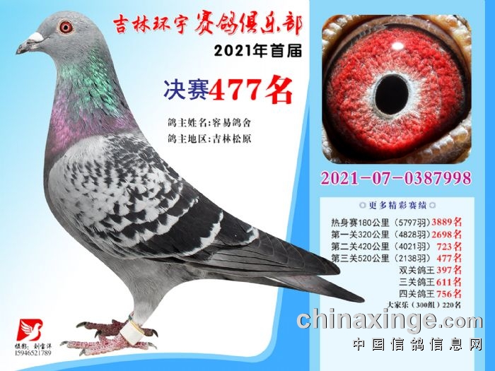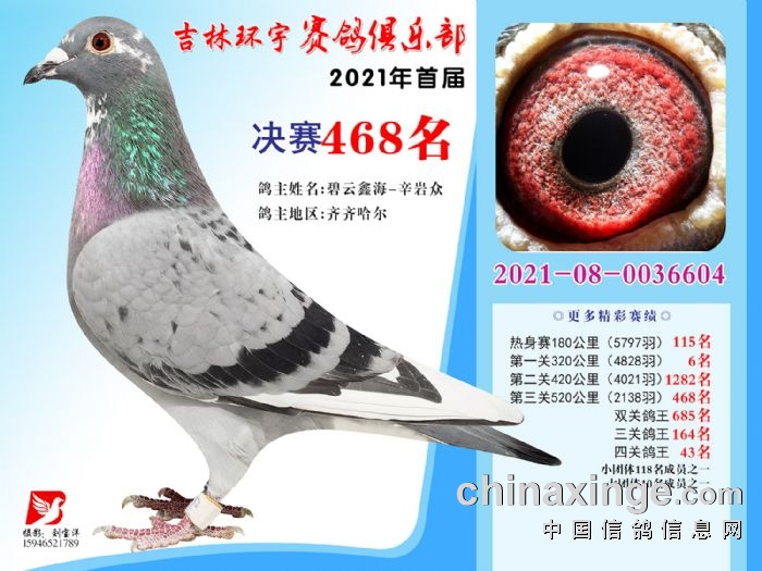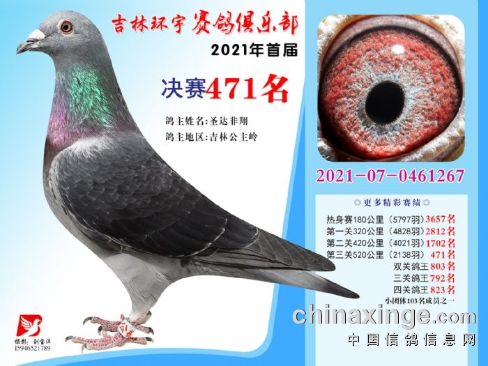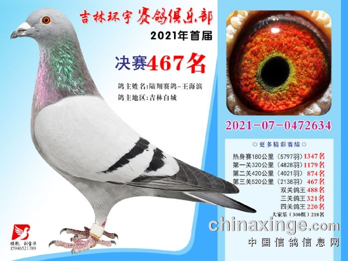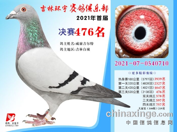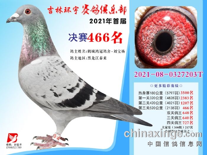吉林环宇公棚(大棚)520公里决赛获奖鸽照片(466-480)