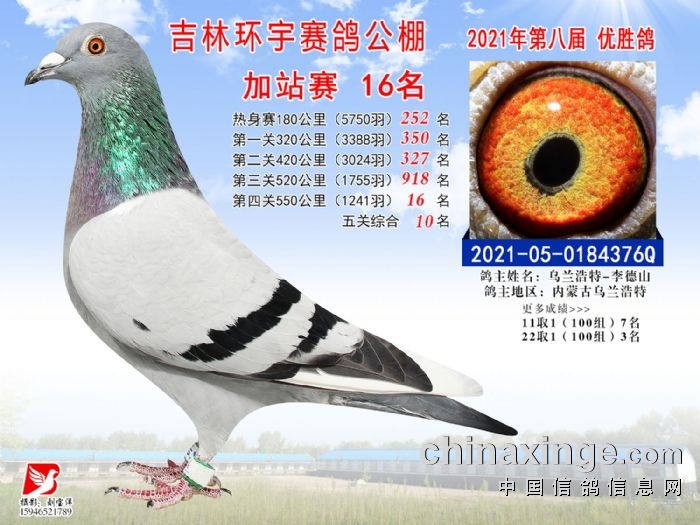 吉林环宇公棚(小棚)2021年加站赛获奖鸽照片(16-30)