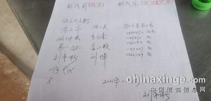 2021年秋季第二关550公里上笼扫描数据在场监放鸽友证明签字