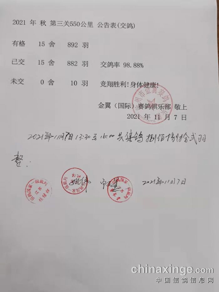 徐州金翼(国际)赛鸽俱乐部第三关结束验鸽
