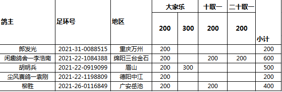 中国川东赛鸽公棚(春棚)收费站“富林万家杯”指定未上笼退费名单