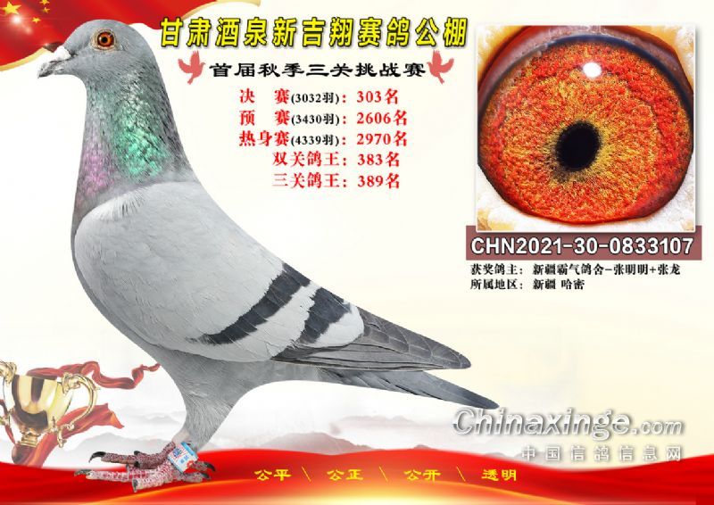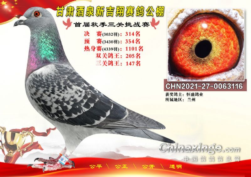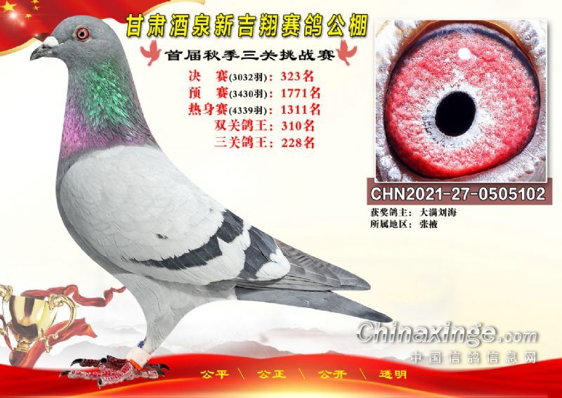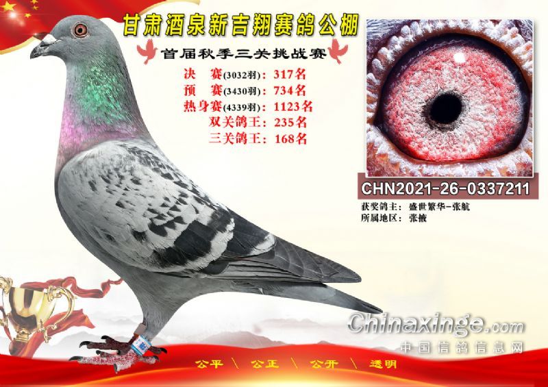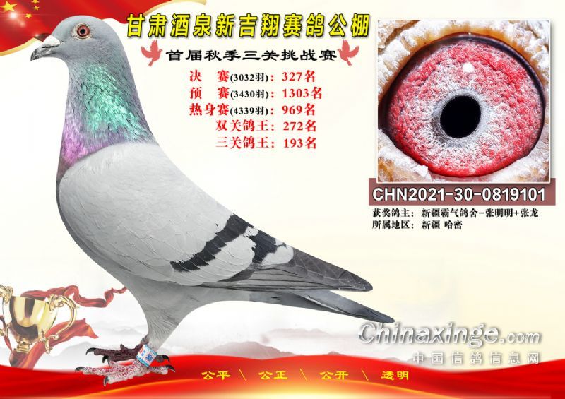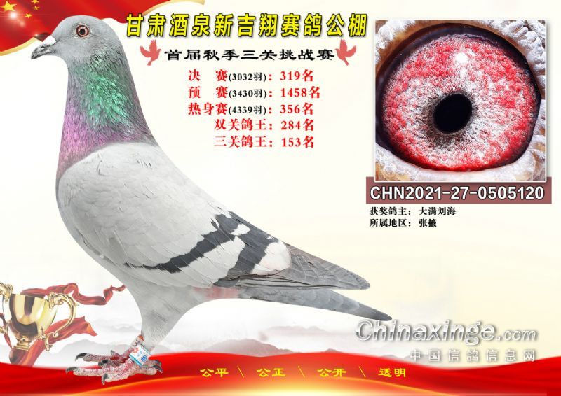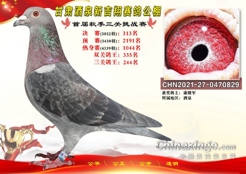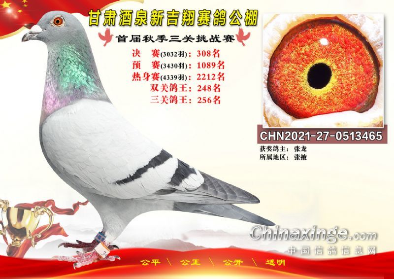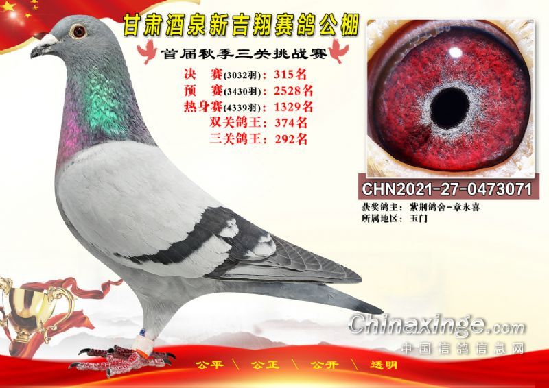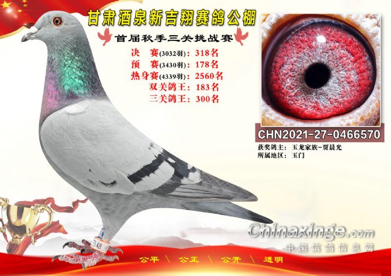 甘肃酒泉新吉翔赛鸽公棚500公里决赛获奖鸽照片(301-385名)