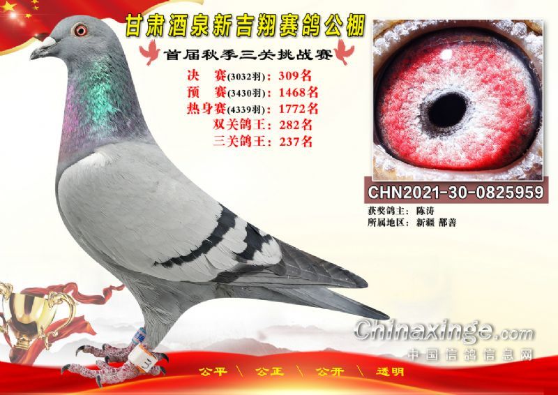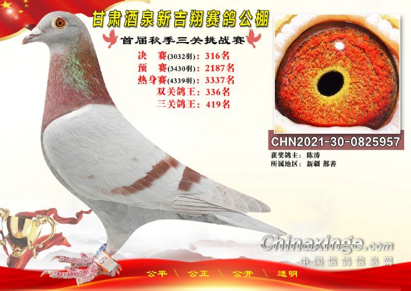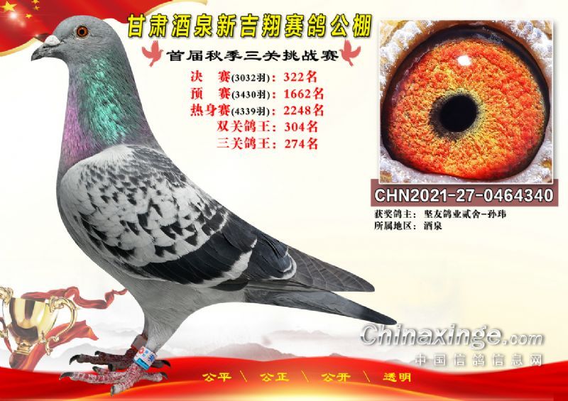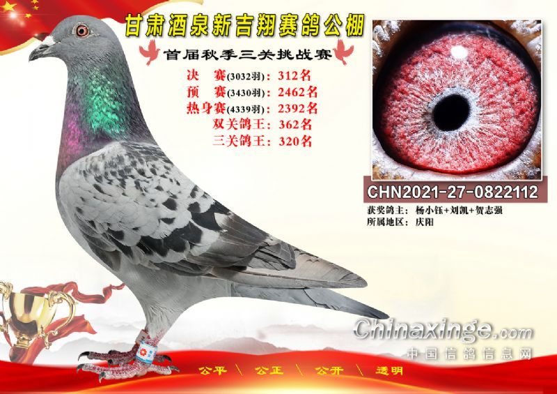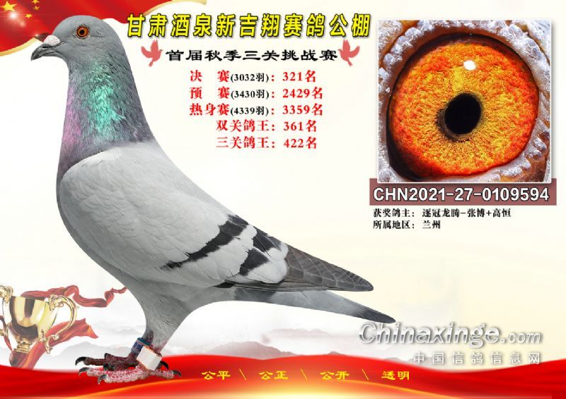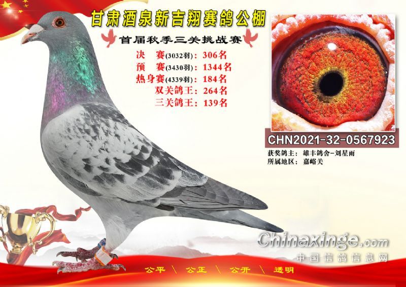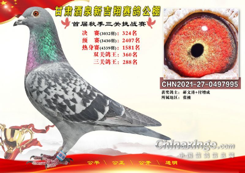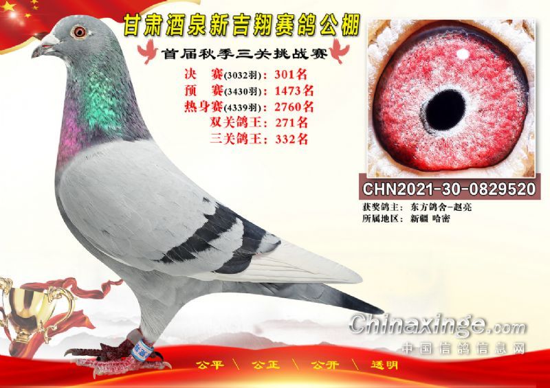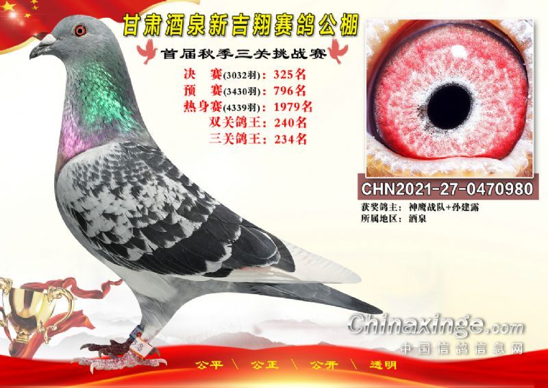 甘肃酒泉新吉翔赛鸽公棚500公里决赛获奖鸽照片(301-385名)