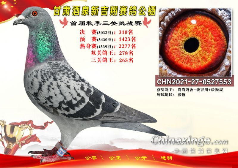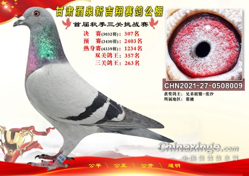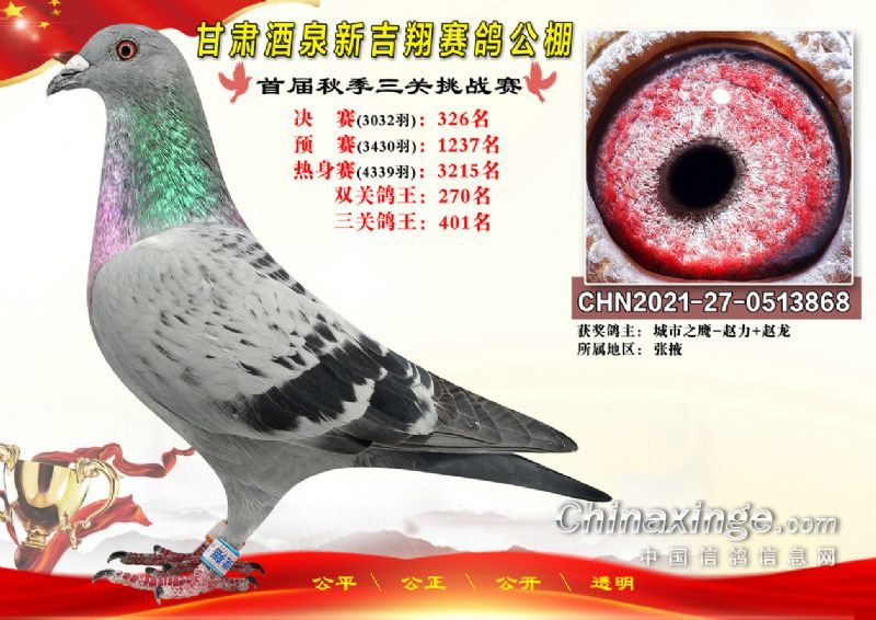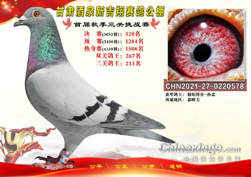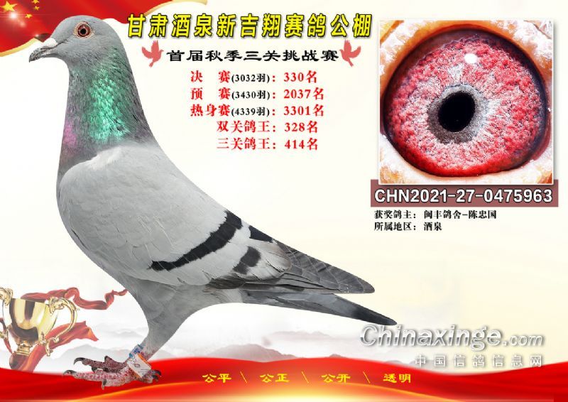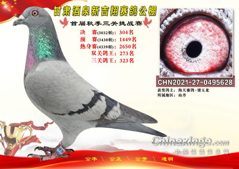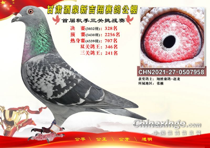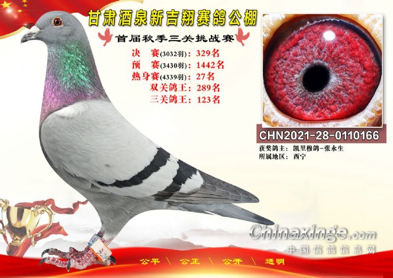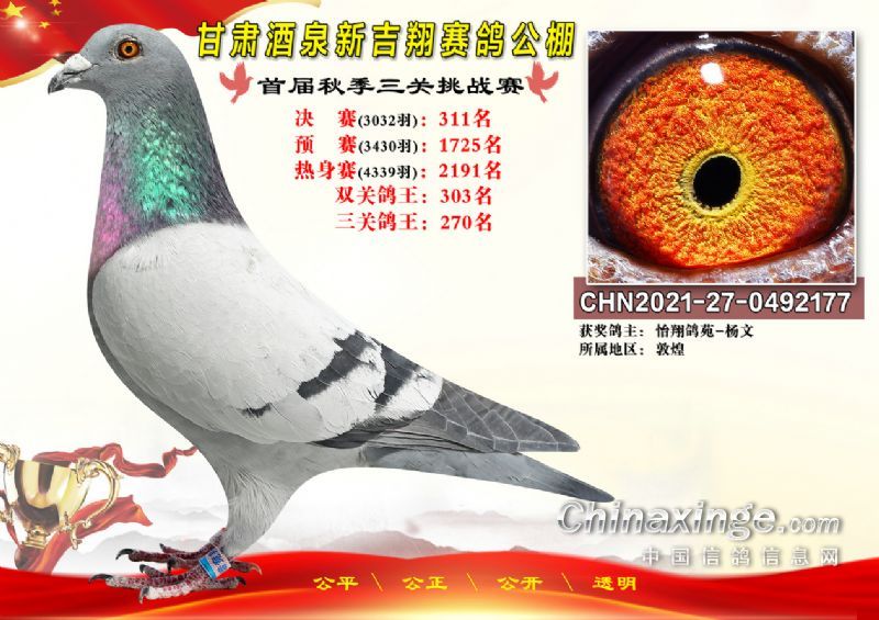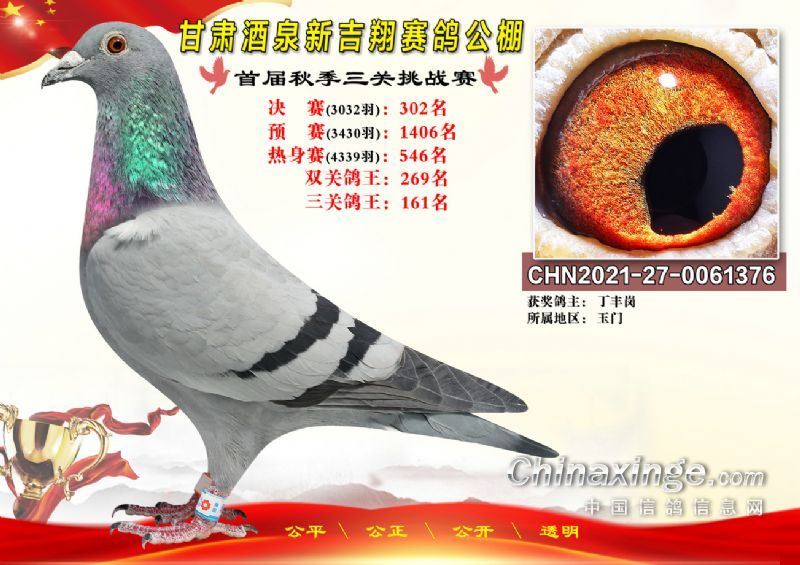 甘肃酒泉新吉翔赛鸽公棚500公里决赛获奖鸽照片(301-385名)