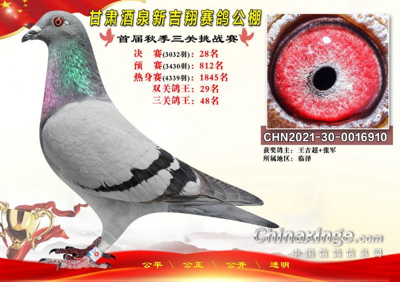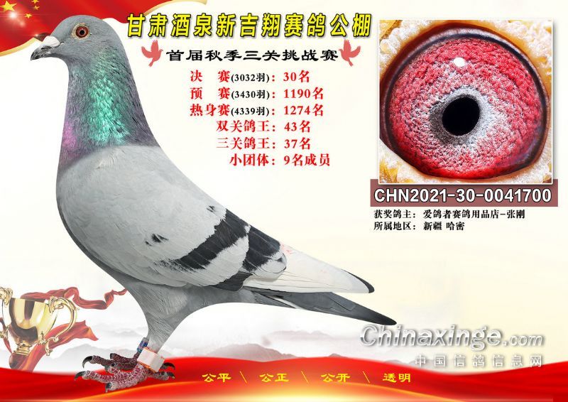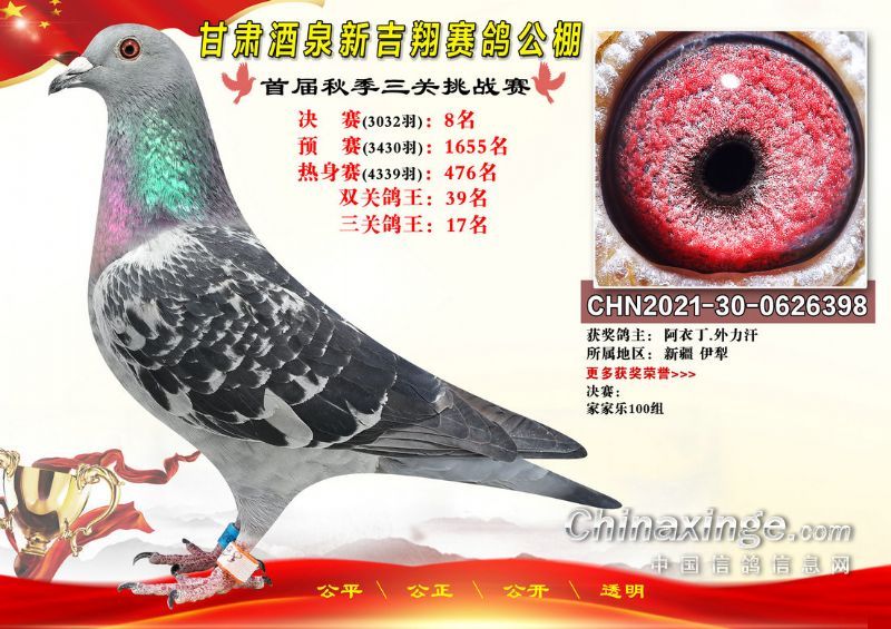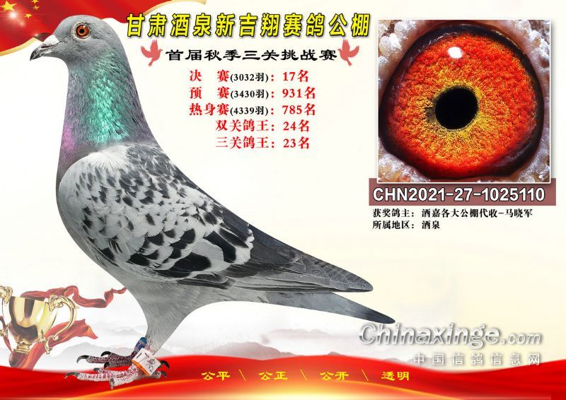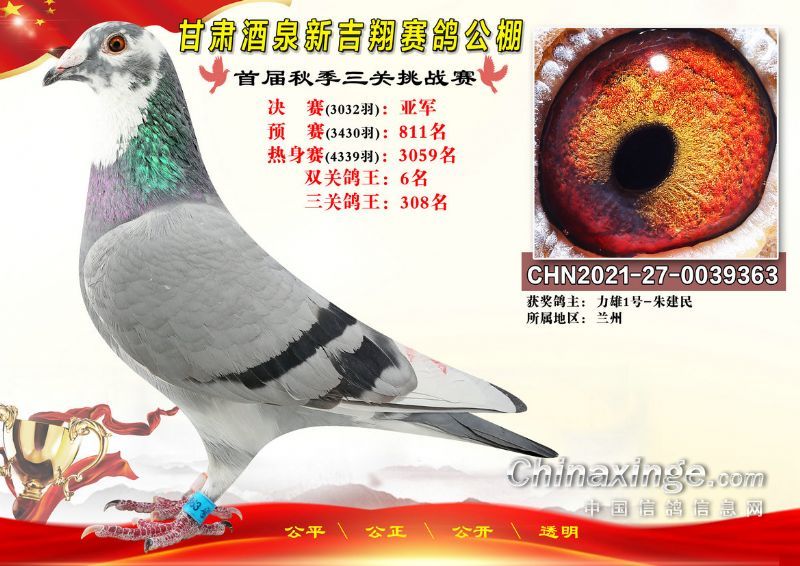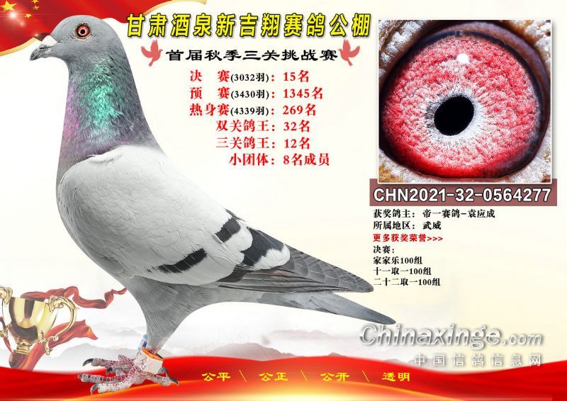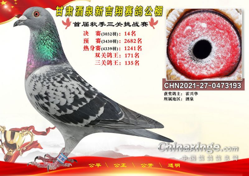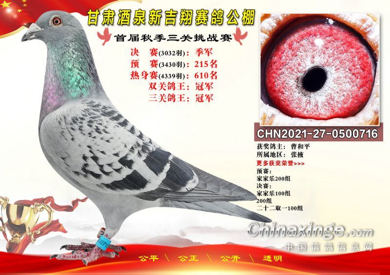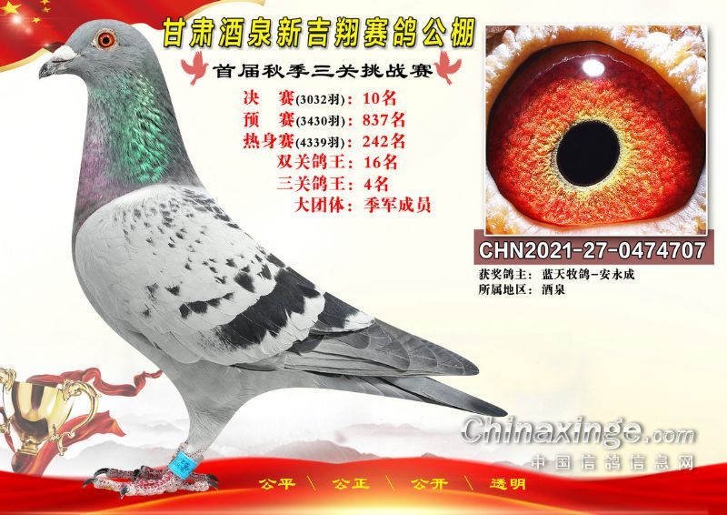 甘肃酒泉新吉翔赛鸽公棚500公里决赛获奖鸽照片(1-100名)