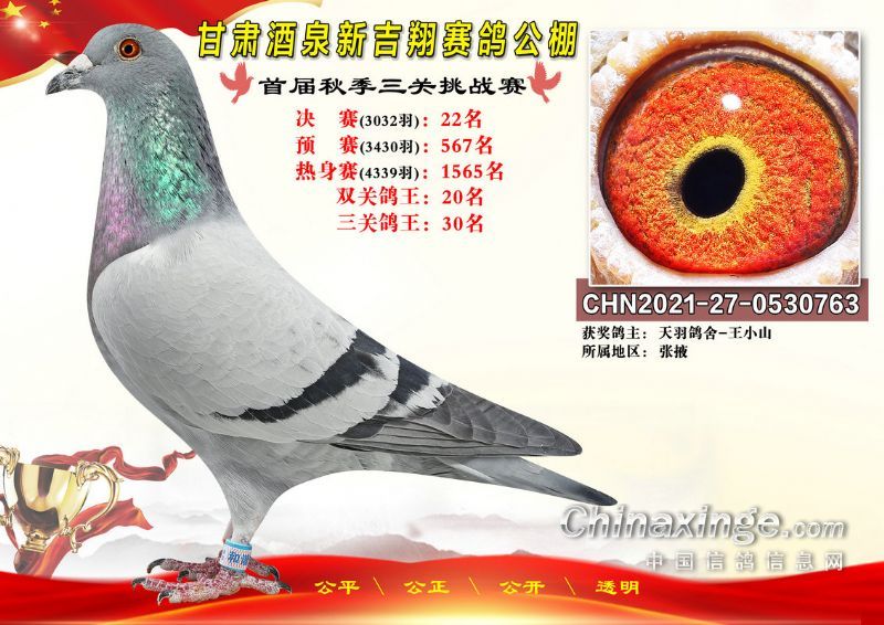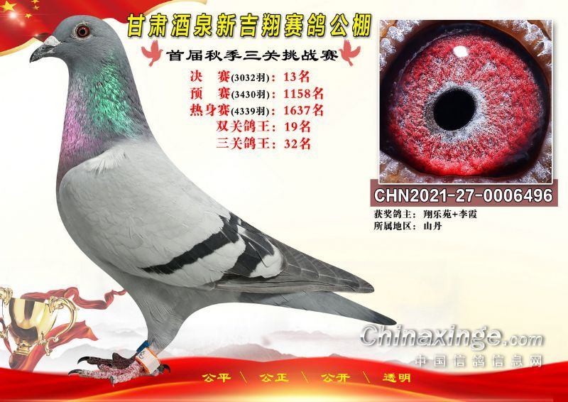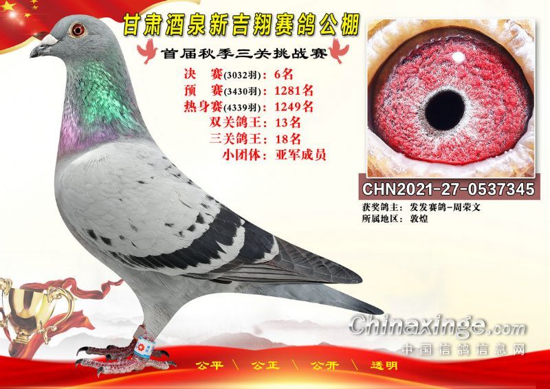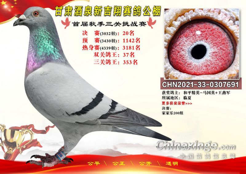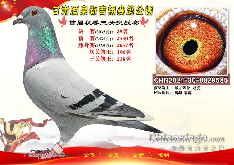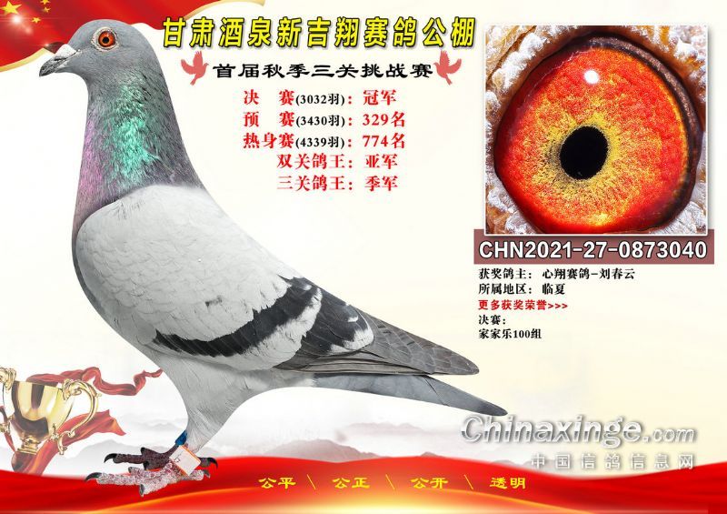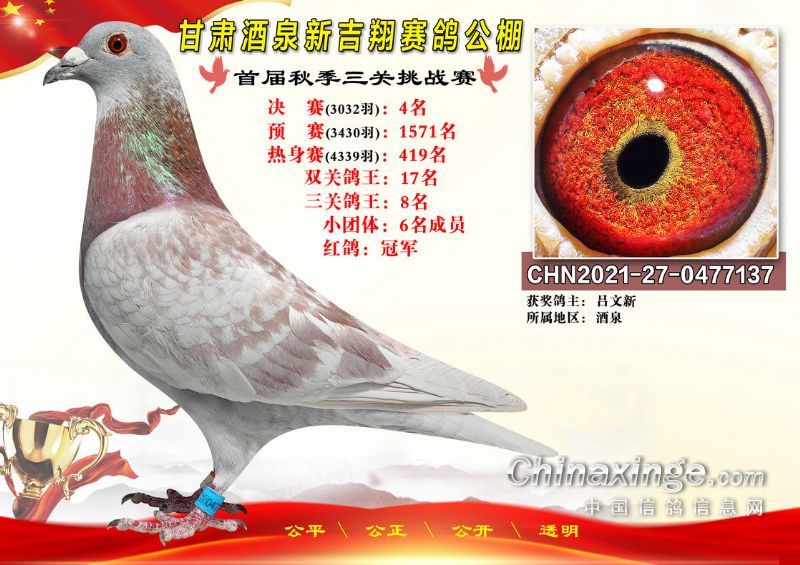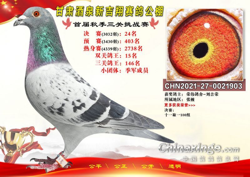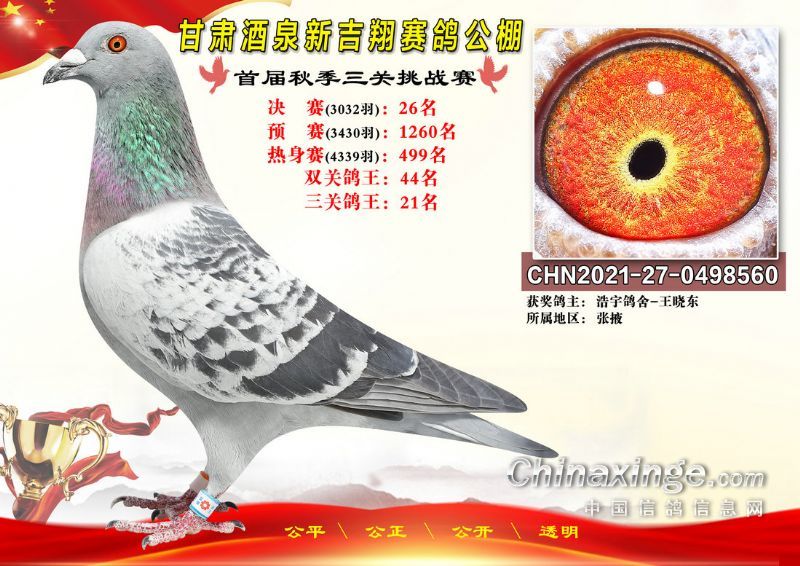 甘肃酒泉新吉翔赛鸽公棚500公里决赛获奖鸽照片(1-100名)