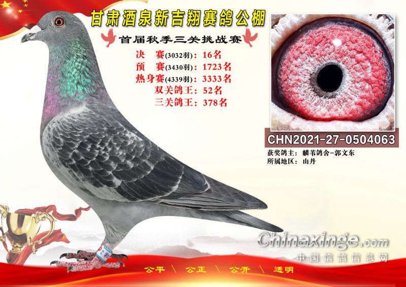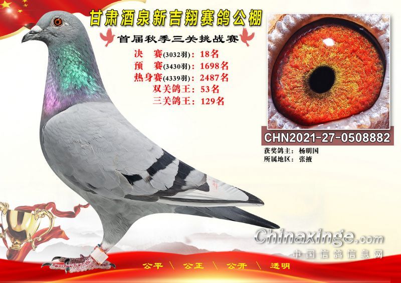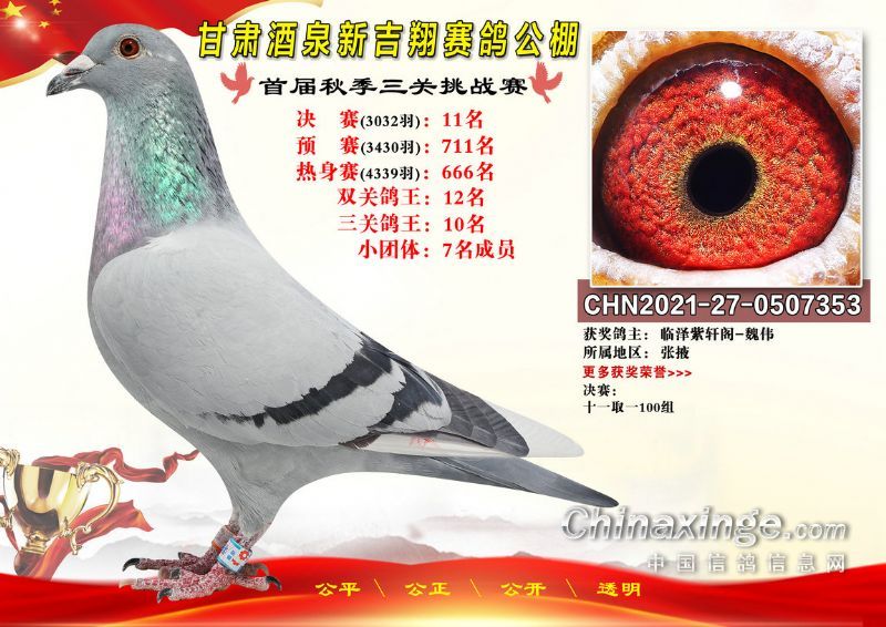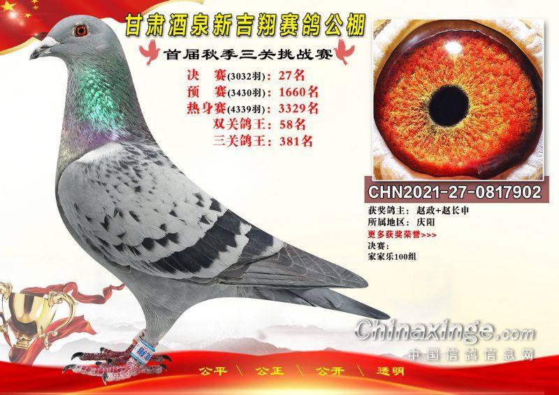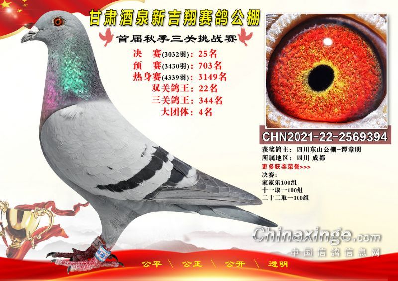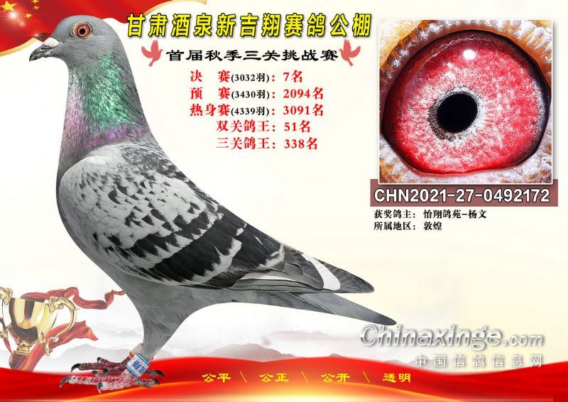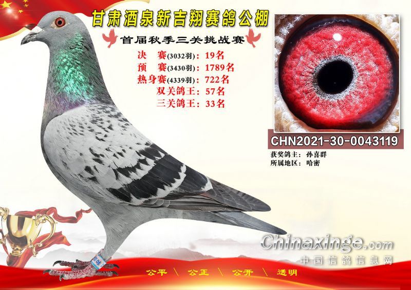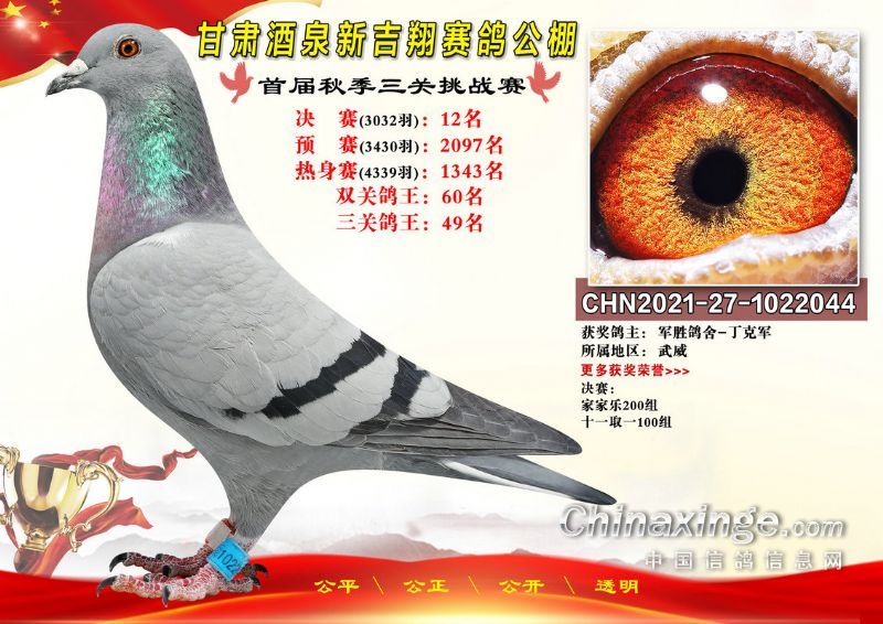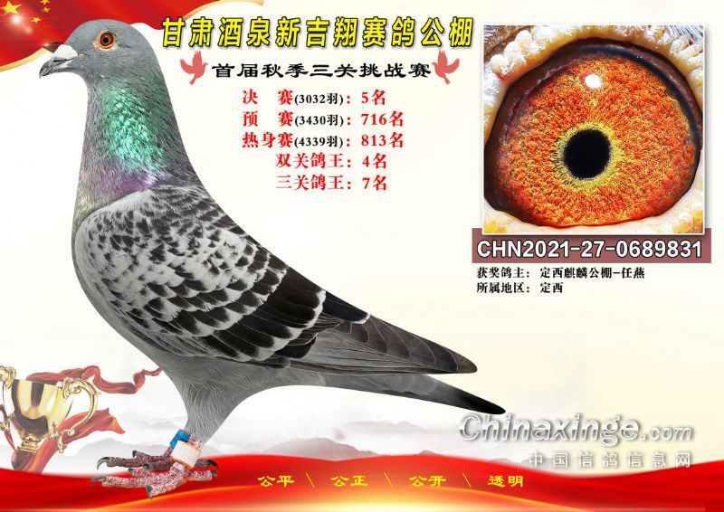 甘肃酒泉新吉翔赛鸽公棚500公里决赛获奖鸽照片(1-100名)