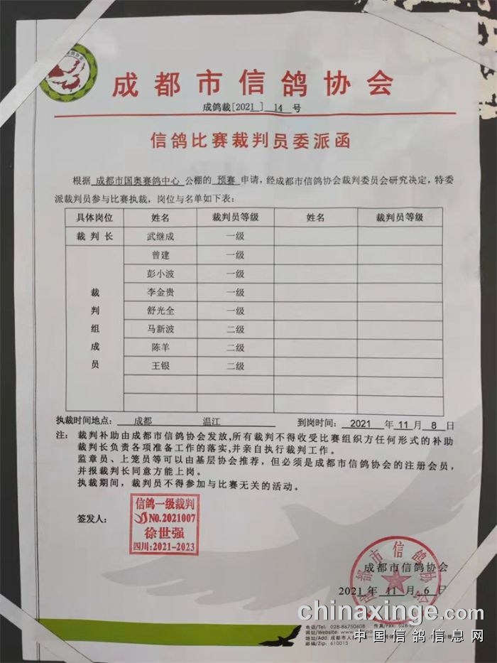 11月8日,赛线天气好转,成都国奥(国际)赛鸽中心2021年第十二届第二关预赛开始集鸽。在成都市信鸽协会委派的裁判组,鸽友代表,直播媒体的共同监督见证下,整个集鸽过程由成都市鸽协委派的裁判人员完成,裁判员对全棚的赛鸽逐羽扫描,盖暗章,唱环,上笼,集鸽流程规范、严谨、有序。