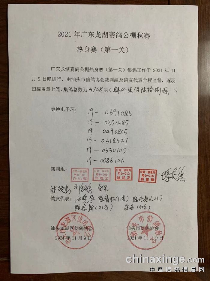 2025广东龙湖赛鸽公棚(第十二届)附加赛(第六关)集鸽清单:3037羽