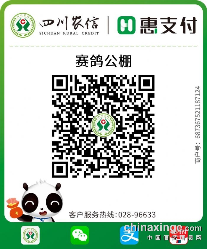 中国建设银行:6217 0036 90007756 686户名:何小兰 (达州市信鸽协会监管账户)