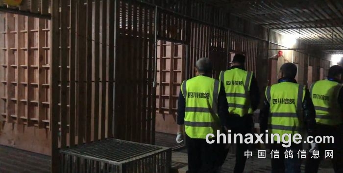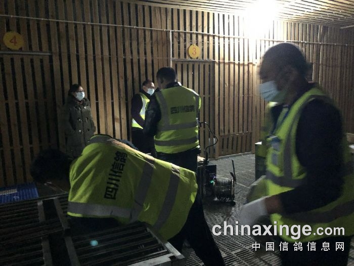 集鸽工作接近尾声,裁判组对鸽棚进行仔细的检查