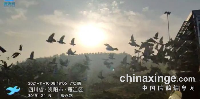 原计划于11月9日放飞,由于沿途天气突变,司放组决定压笼一天更改为11月10日开笼,司放地:资阳乐至,开笼时间:2021年11月10日早上8点18分,经、纬度:104°47′51.0000″、30°9′14.0000″,空距:300km(土5%)。