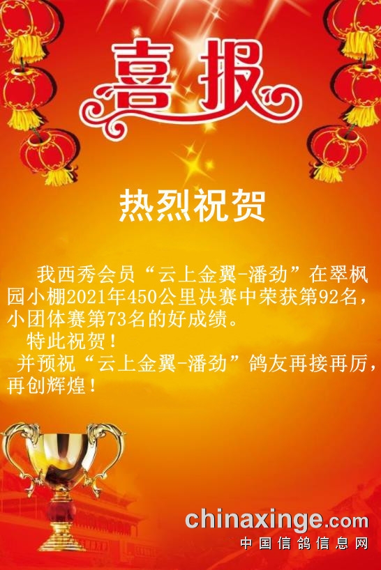 西秀赛鸽:热烈祝贺“云上金翼-潘劲”