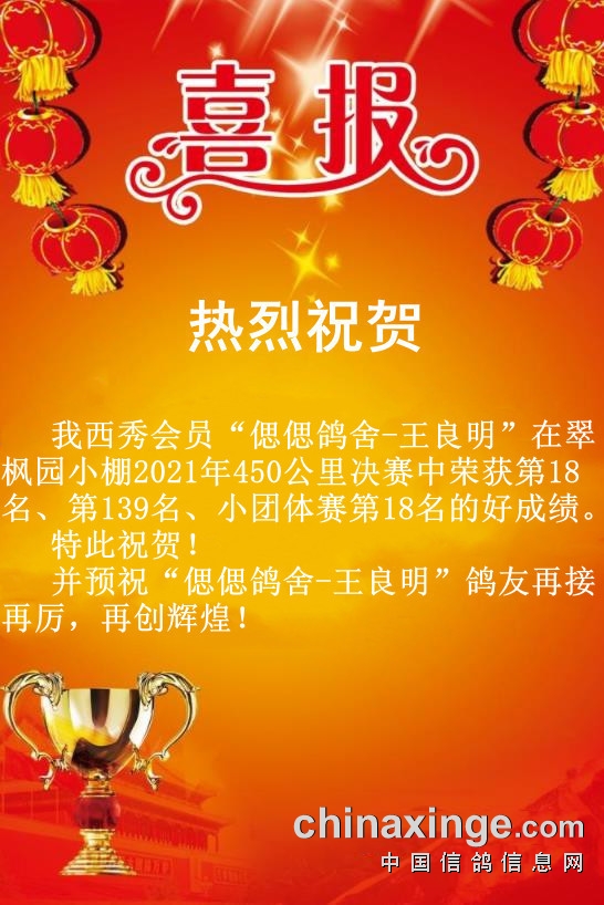 西秀赛鸽:热烈祝贺“偲偲鸽舍-王良明”