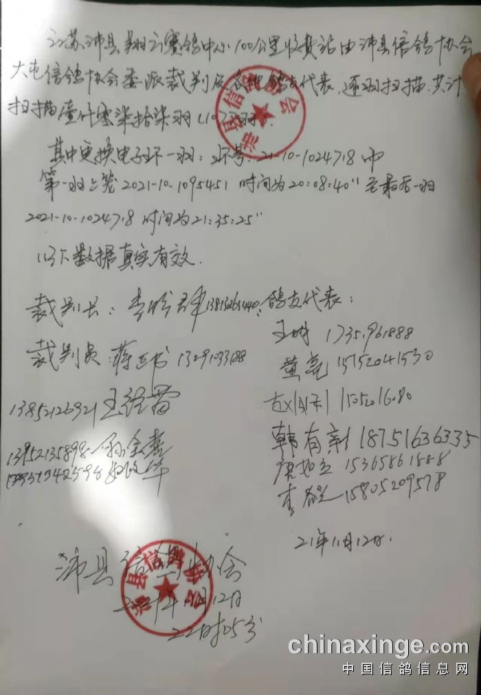 沛县翔云赛鸽第九站二十三公里训放扫描