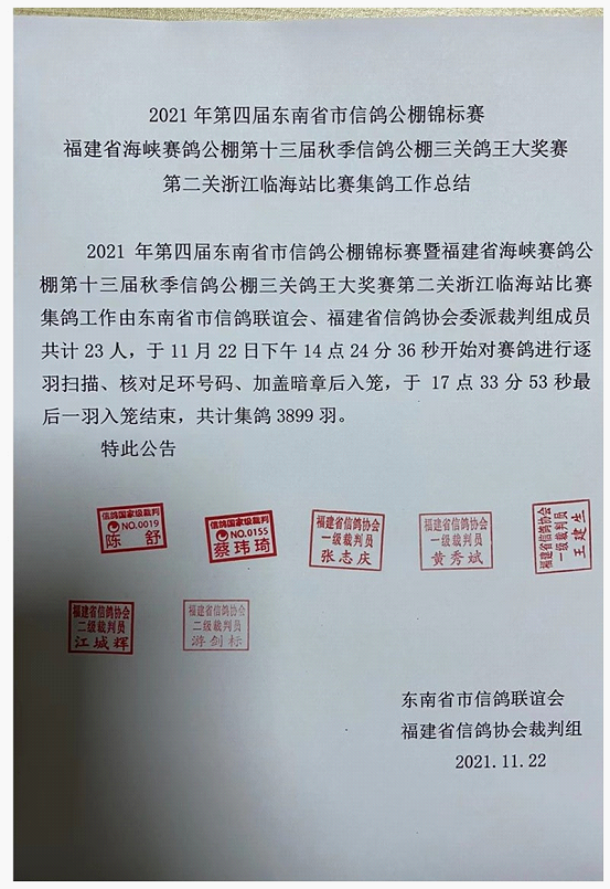 2021年第二关临海站(390KM)比赛集鸽图选
