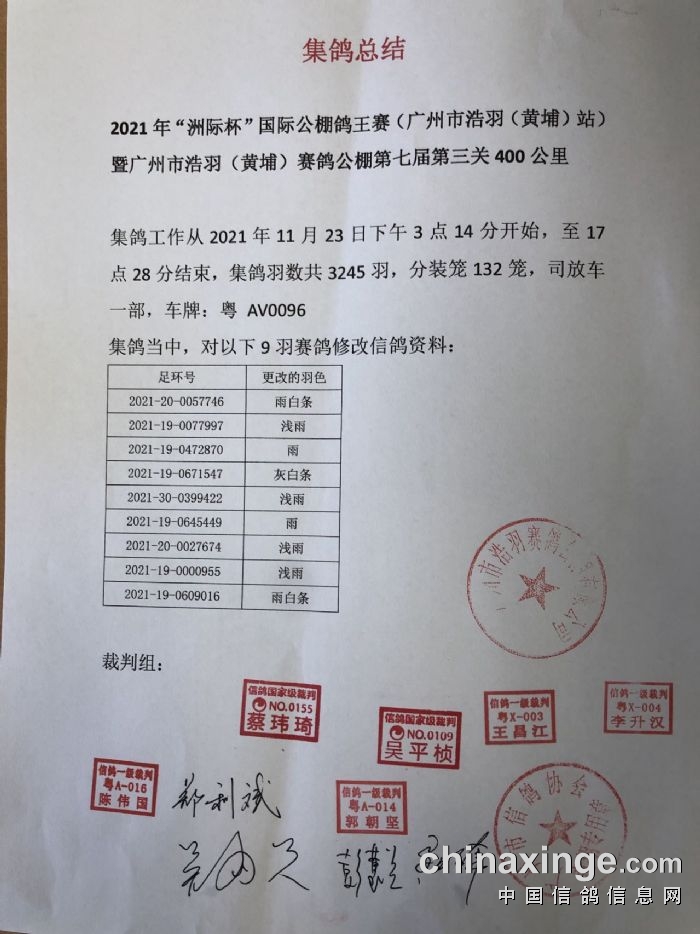 广州浩羽(黄埔)公棚第一关热身赛集鸽扫描清单(8632羽)