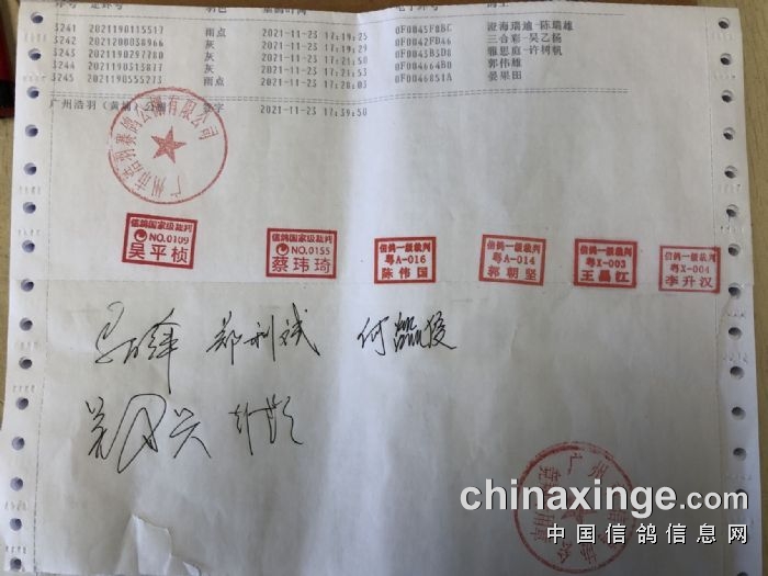 广州浩羽(黄埔)公棚第一关单羽四关赛有效名单(开笼起至次日19:00为有效报到期)