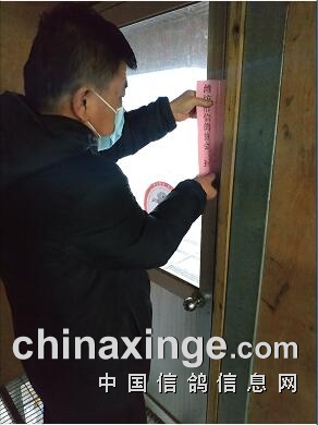 为潍坊市玉鑫赛鸽公棚开启封条。